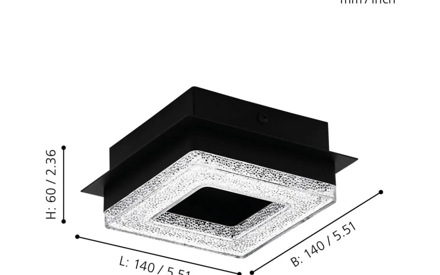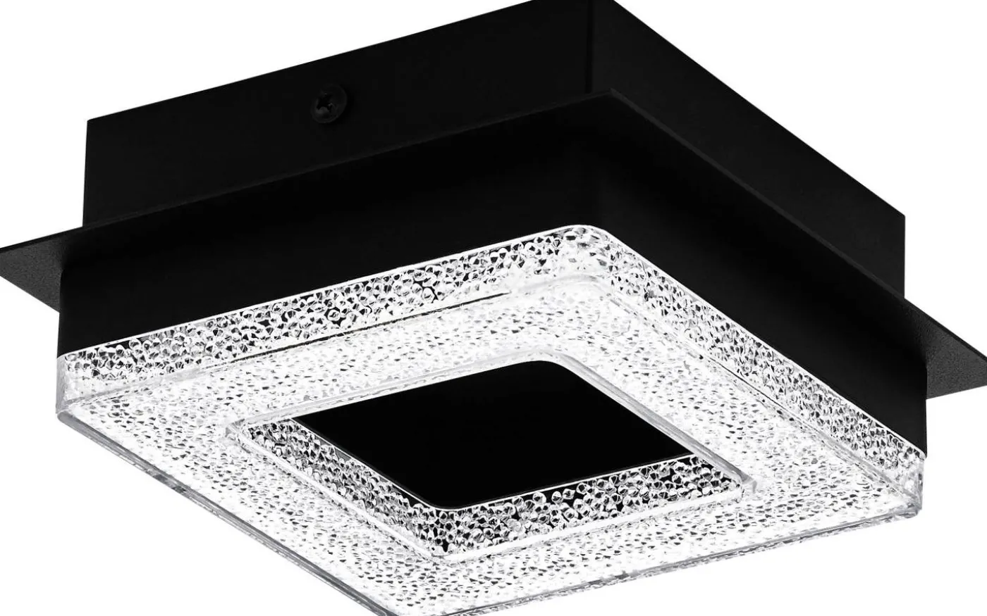 FRADELO 1 LED-taklampa har en fyrkantig svart metallkropp och ett transparent plastljuselement med klara granulära kristaller inuti. Denna kristalldesign skapar en glittrande, exklusiv look, som står i kontrast till den svarta finishen för en dramatisk effekt. De integrerade lysdioderna ger ett behagligt varmvitt ljus. Med sin klassiska design smälter produkten sömlöst in i moderna interiörer och fungerar bra i alla vardagsrum, oavsett om det är i kök, vardagsrum, sovrum, hall eller matsal.