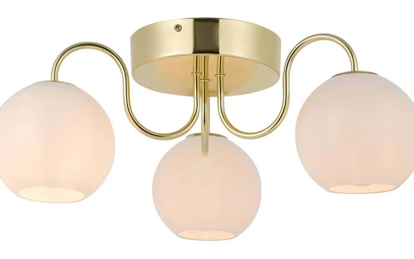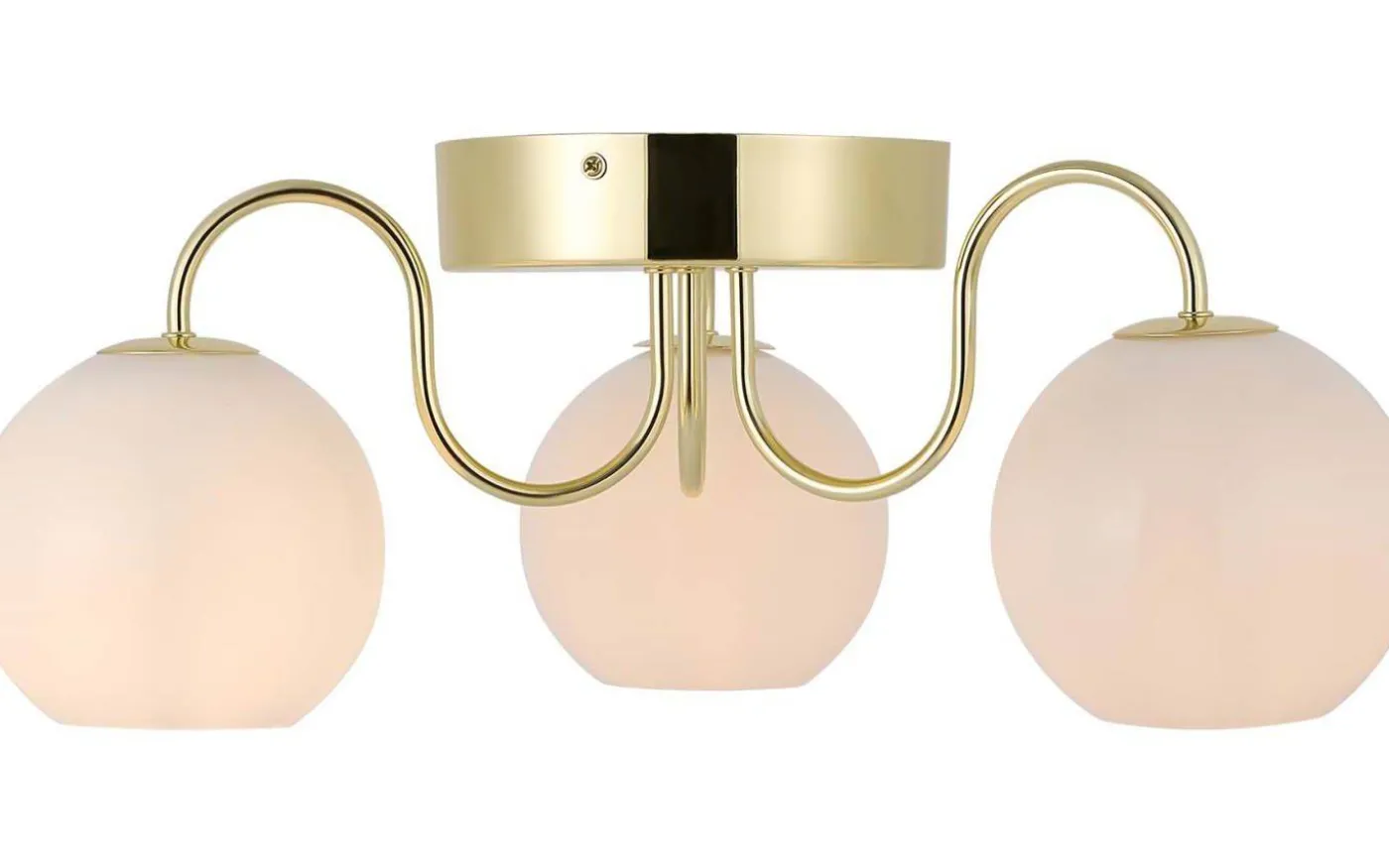 Stilfulla Franca från danska Nordlux är en elegant plafond i blank mässing tillsammans med blanka opalglas.