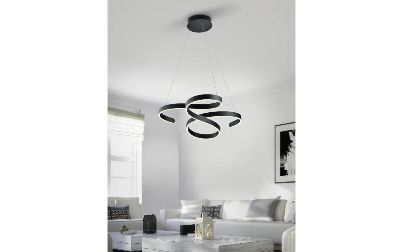 En höjdpunkt i alla vardagsrum! Pendellampan FRANCIS skapar stämningsfulla ljuseffekter. Med sin moderna och ovanliga design ger lampan ditt rum en individuell charm som kommer att imponera. I vardagsrummet, hallen eller ovanför matbordet, oavsett var, FRANCIS erbjuder den där speciella touchen överallt! Armaturen har också en SWITCH-dimmer, vilket gör att ljusstyrkan kan justeras från 100 % till 50 % och 25 % med en vanlig ljusströmbrytare. Pendellampan har en höjd på 150 cm och en bredd på 68 cm. Tack vare den antracitgrå färgsättningen kan lampan kombineras med många inredningsstilar. Dessutom har armaturerna modern LED-teknik, vilket står för hög ljuskvalitet. LED-ljuskällor kännetecknas av lång livslängd och låg värmeutveckling. Ljuskälla: inklusive 1x SMD, 48W · 1x 5600lm, 3000K. Extra information: Justerbar i höjd, Takmontering, IP20, Ej dimbar, Dimbar via strömbrytare