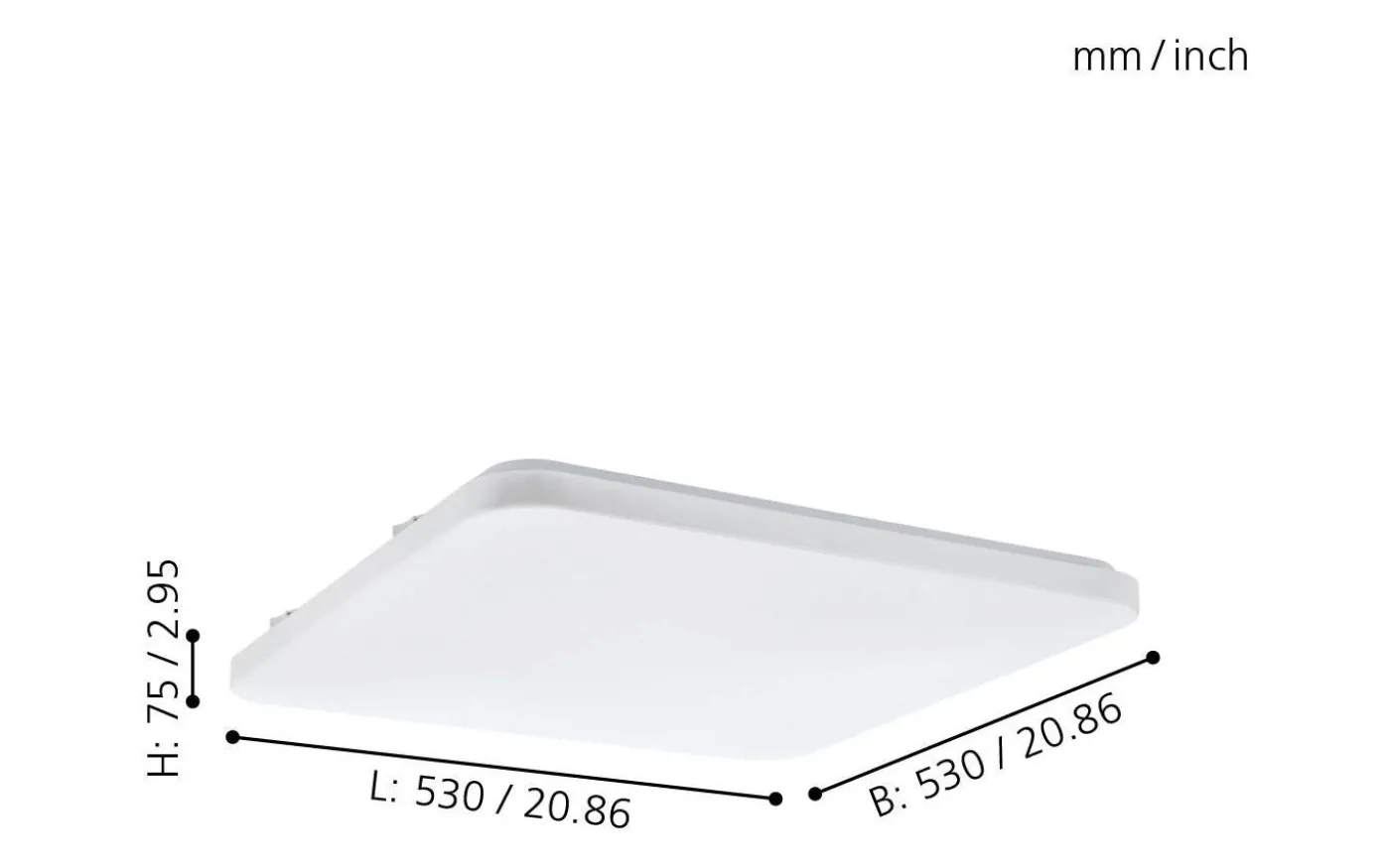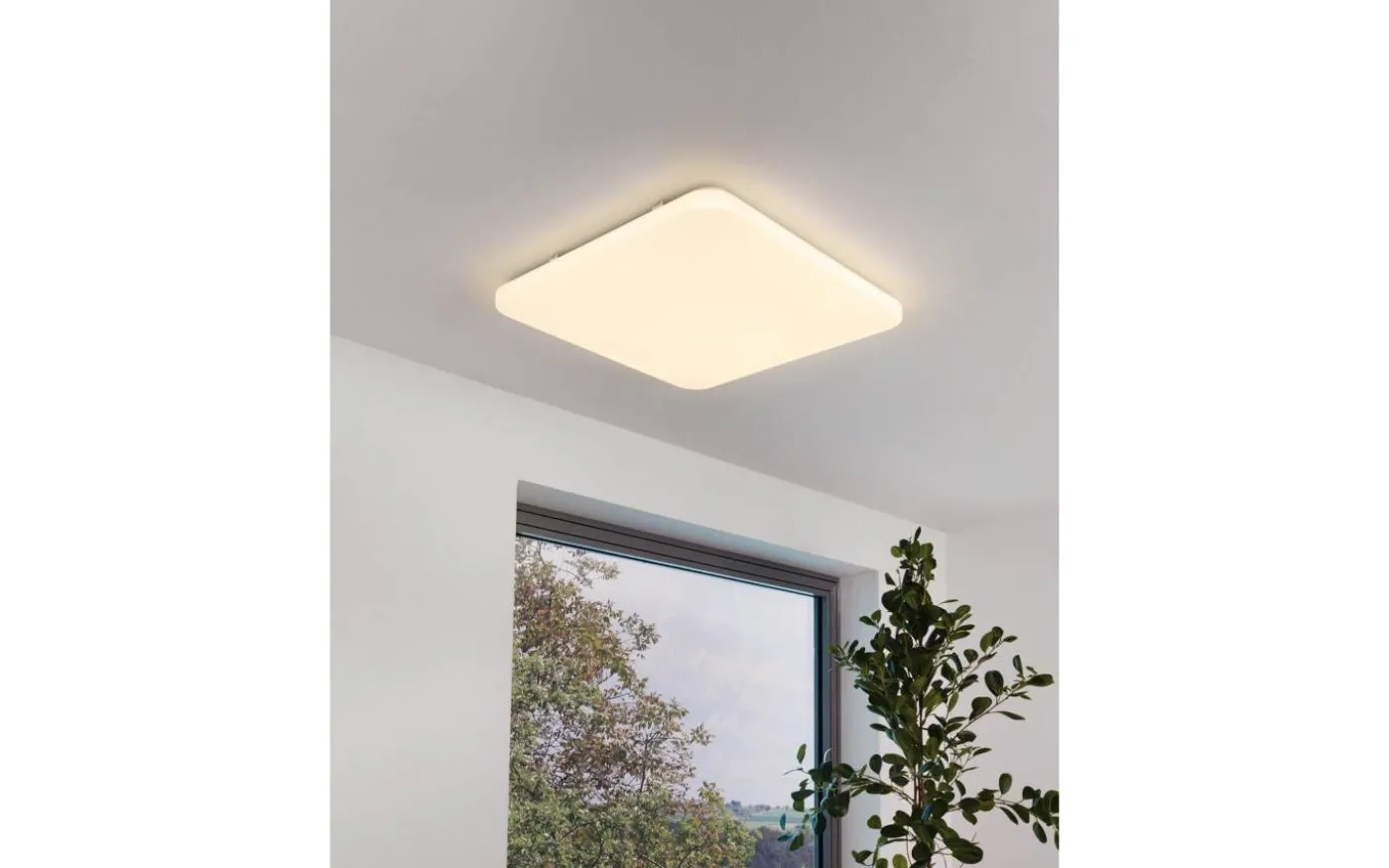 FRANIA LED-taklampan har en fyrkantig vit plastkåpa med en vit metallbakpanel. De integrerade lysdioderna ger ett behagligt varmvitt ljus. Den klassiska taklampan smälter sömlöst in i moderna interiörer, och med en bredd på 53 cm kommer den garanterat att ge utmärkt belysning för dina vardagsrum.