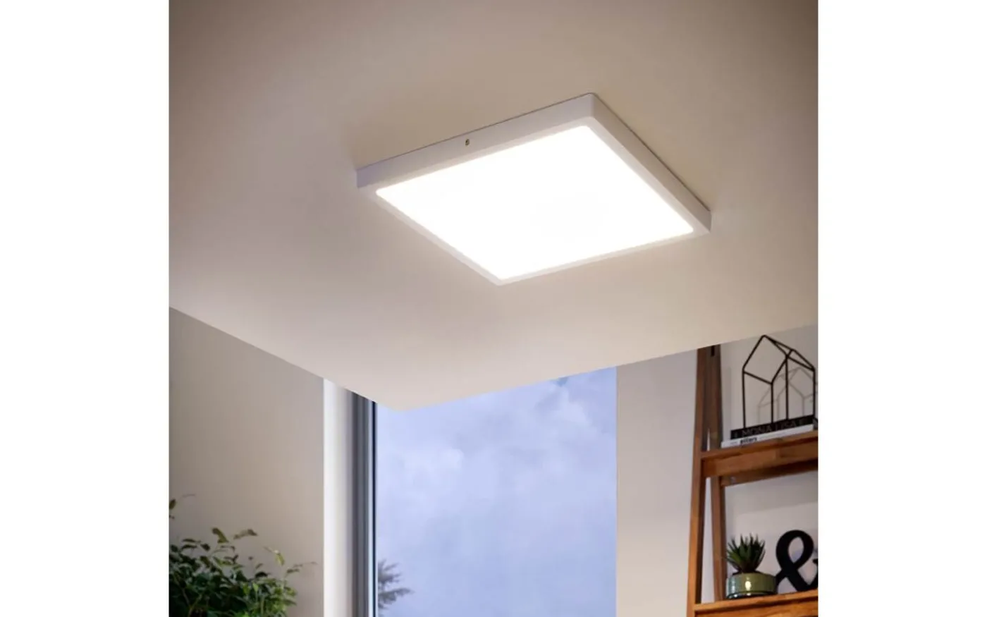 FUEVA 1 utanpåliggande LED-lampa är gjord av vit aluminium och har en höjd på bara 30 mm, så den kan integreras i alla utrymmen. De integrerade lysdioderna döljs av en vit diffusor och ger ett behagligt varmvitt ljus. Produkten är dimbar med hjälp av en koordinerande roterande dimmer på väggen. Den runda taklampan har en diameter på 40 cm och kan integreras väl i köket, vardagsrummet, sovrummet eller hallen.