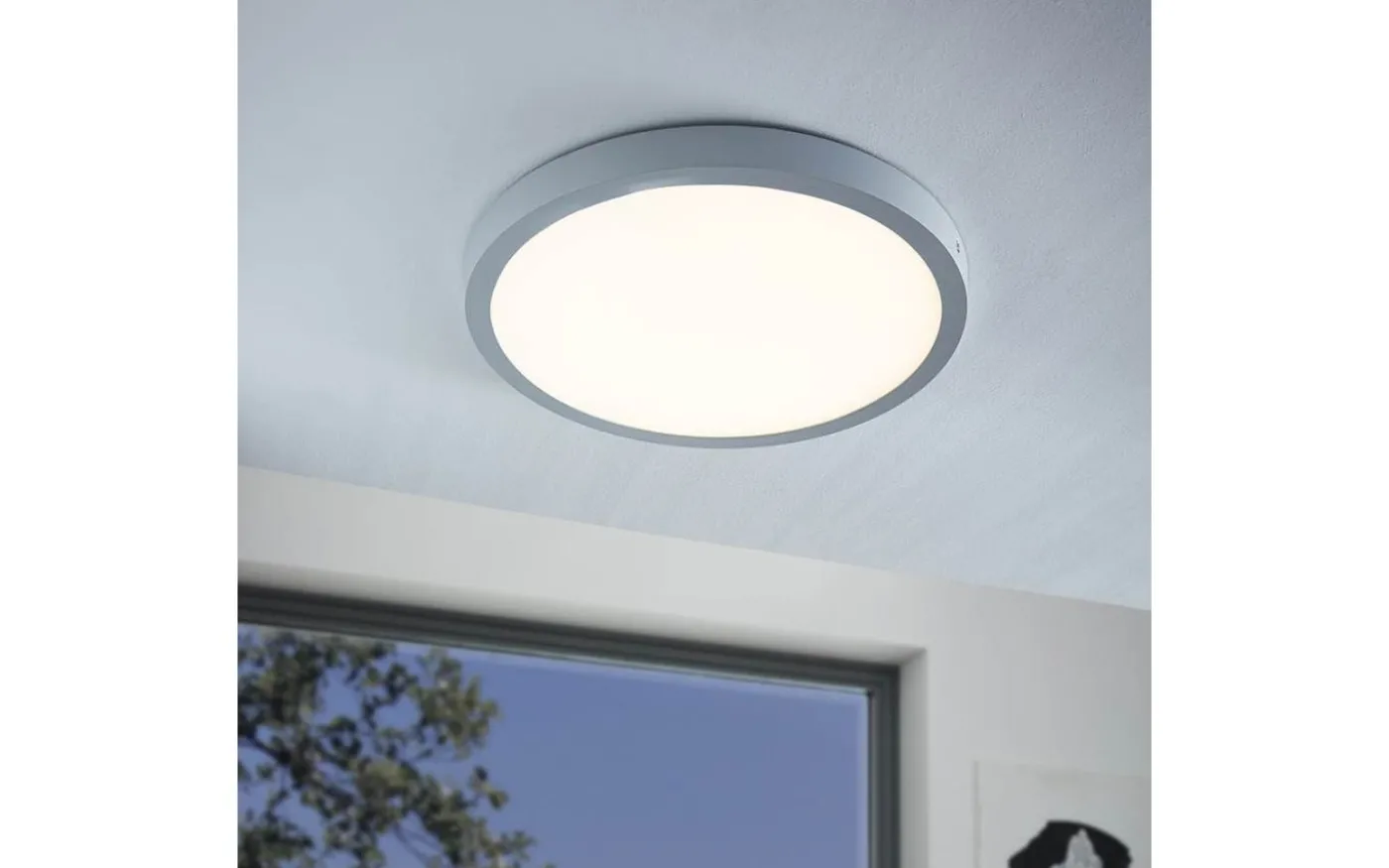 FUEVA 1 utanpåliggande LED-lampa är gjord av silverfärgad aluminium och har en höjd på bara 30 mm, så den kan integreras i alla utrymmen. De integrerade lysdioderna döljs av en vit diffusor och ger ett behagligt varmvitt ljus. Produkten har en klassisk design och en diameter på 40 cm, perfekt för användning i vardagsrummet, sovrummet, hallen eller matsalen.