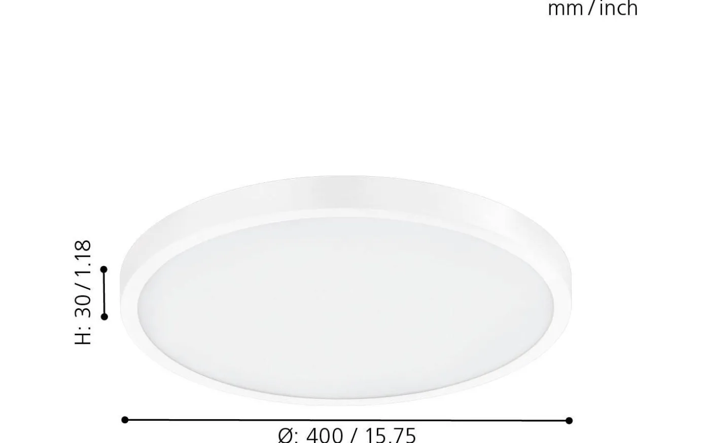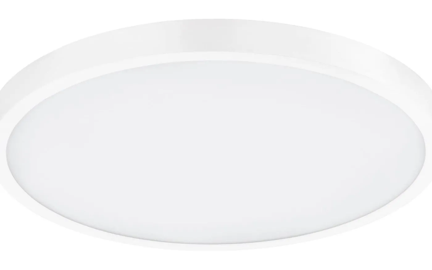 FUEVA 1 utanpåliggande LED-lampa är gjord av vit aluminium och har en höjd på bara 30 mm, så den kan integreras i alla utrymmen. De integrerade lysdioderna döljs av en vit diffusor och ger ett behagligt varmvitt ljus. Produkten är dimbar med hjälp av en koordinerande roterande dimmer på väggen. Den runda taklampan har en diameter på 40 cm och kan integreras väl i köket, vardagsrummet, sovrummet eller hallen.