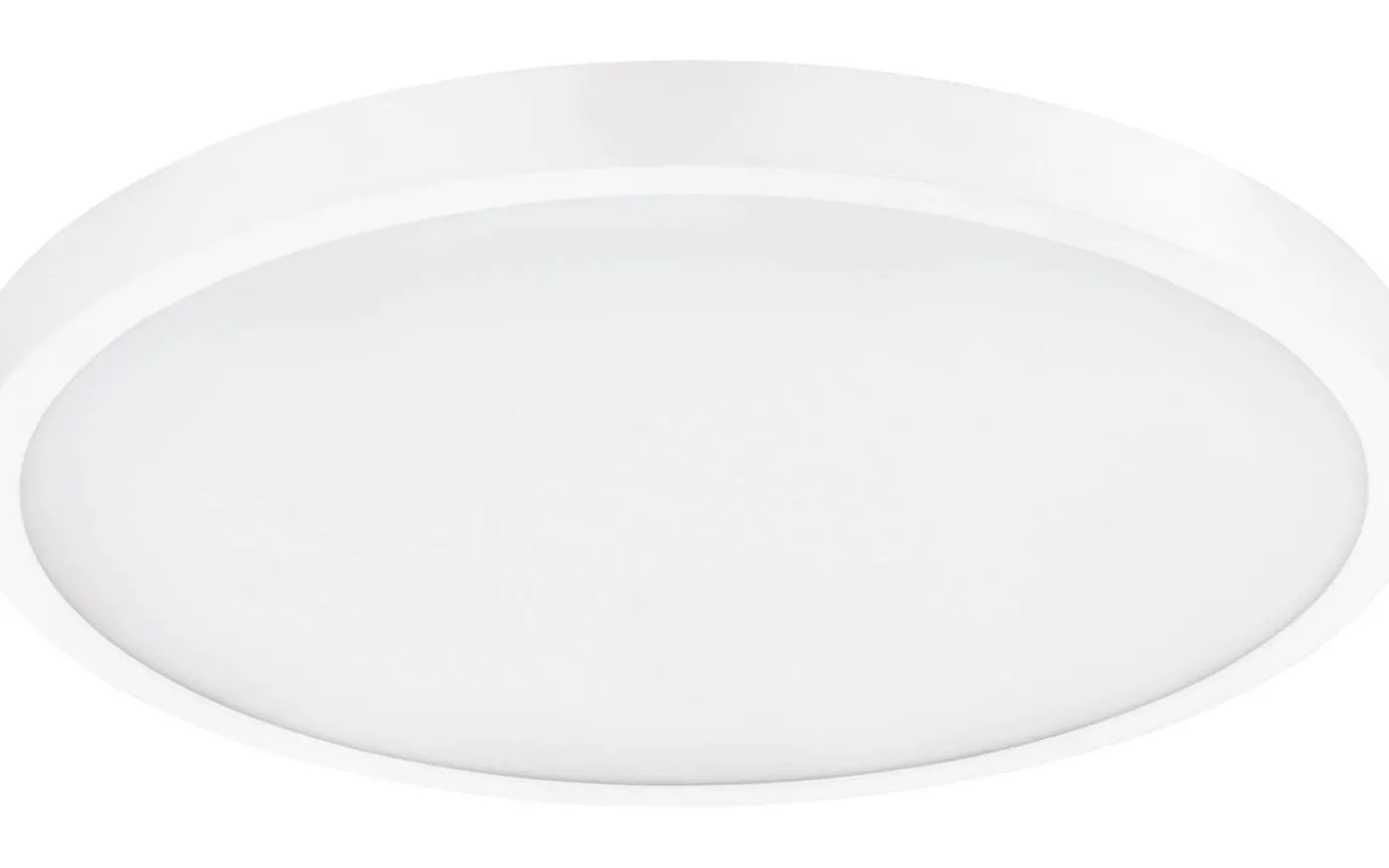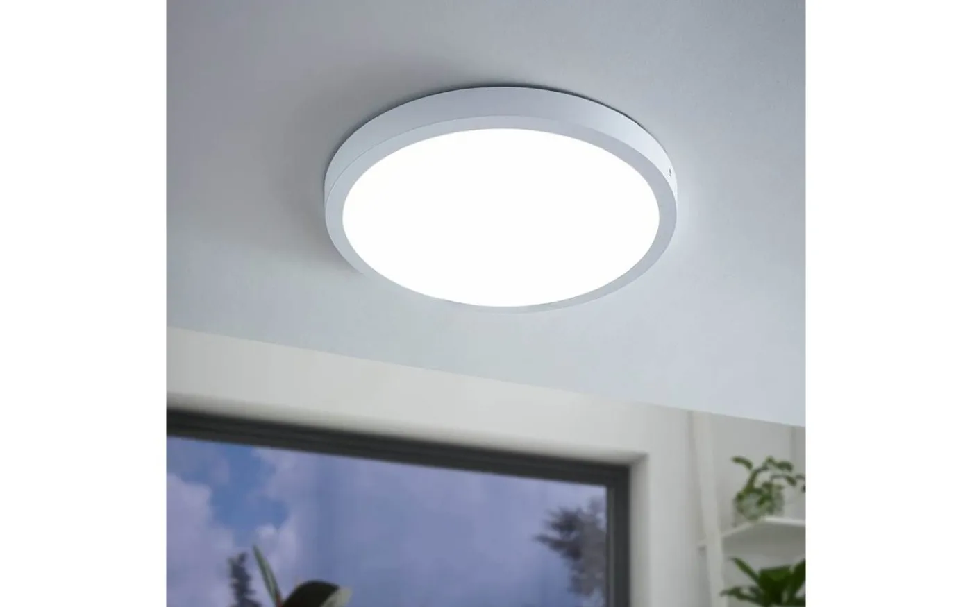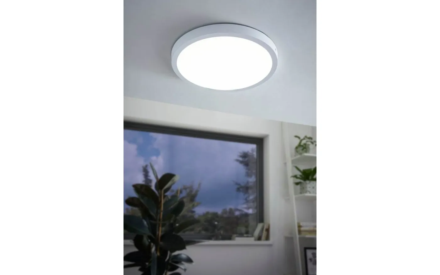 FUEVA 1 utanpåliggande LED-lampa är gjord av vit aluminium och har en höjd på bara 30 mm, så den kan integreras i alla utrymmen. De integrerade lysdioderna döljs av en vit diffusor och ger ett starkt neutralt vitt ljus. Produkten är dimbar med hjälp av en koordinerande roterande dimmer på väggen. Den runda taklampan har en diameter på 40 cm och kan integreras väl i köket, hallen, grovköket eller kontoret.