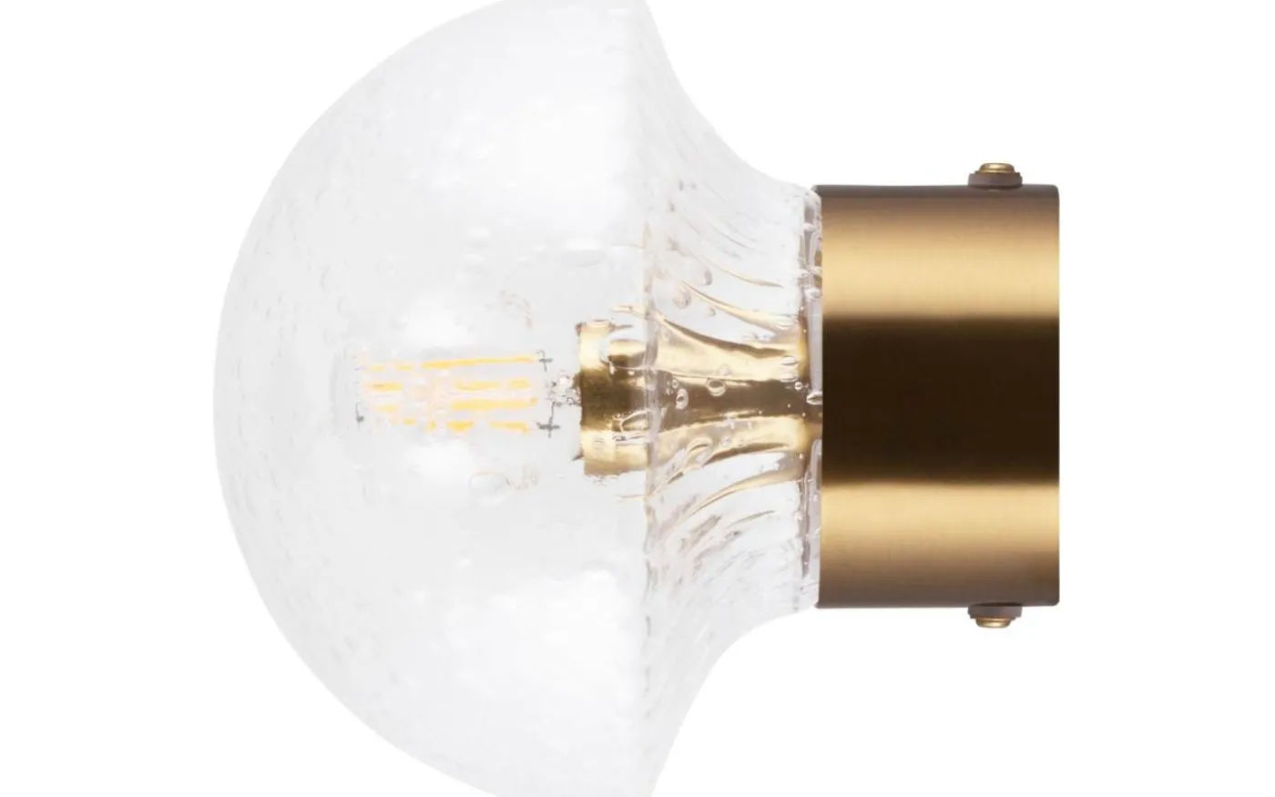 Fungo från Globen Lighting är en vägglampa/plafond med bas i metall och en räfflad, munblåst glaskupa som ger ett vackert ljusspel på vägg eller tak. Eftersom glaset är munblåst är varje lampa unik i färg, tjocklek och struktur.
