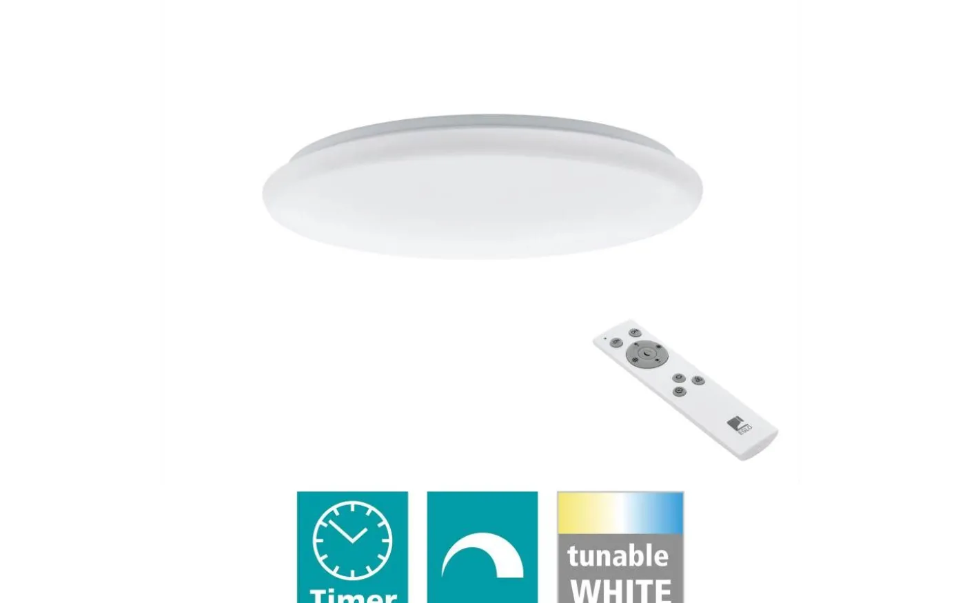 GIRON LED-taklampan är gjord av vit metall och har en rund plastkåpa. De integrerade lysdioderna ger ett behagligt ljus som kan justeras efter behov. Den medföljande fjärrkontrollen kan justera ljusstyrkan, variera färgtemperaturen mellan varmvit, neutralvit och kallvit samt ställa in nattljus och timer. Med en diameter på 57 cm smälter taklampan sömlöst med moderna interiörer och ger distinkt belysning för alla utrymmen, oavsett om det är i köket, vardagsrummet, sovrummet eller hallen.