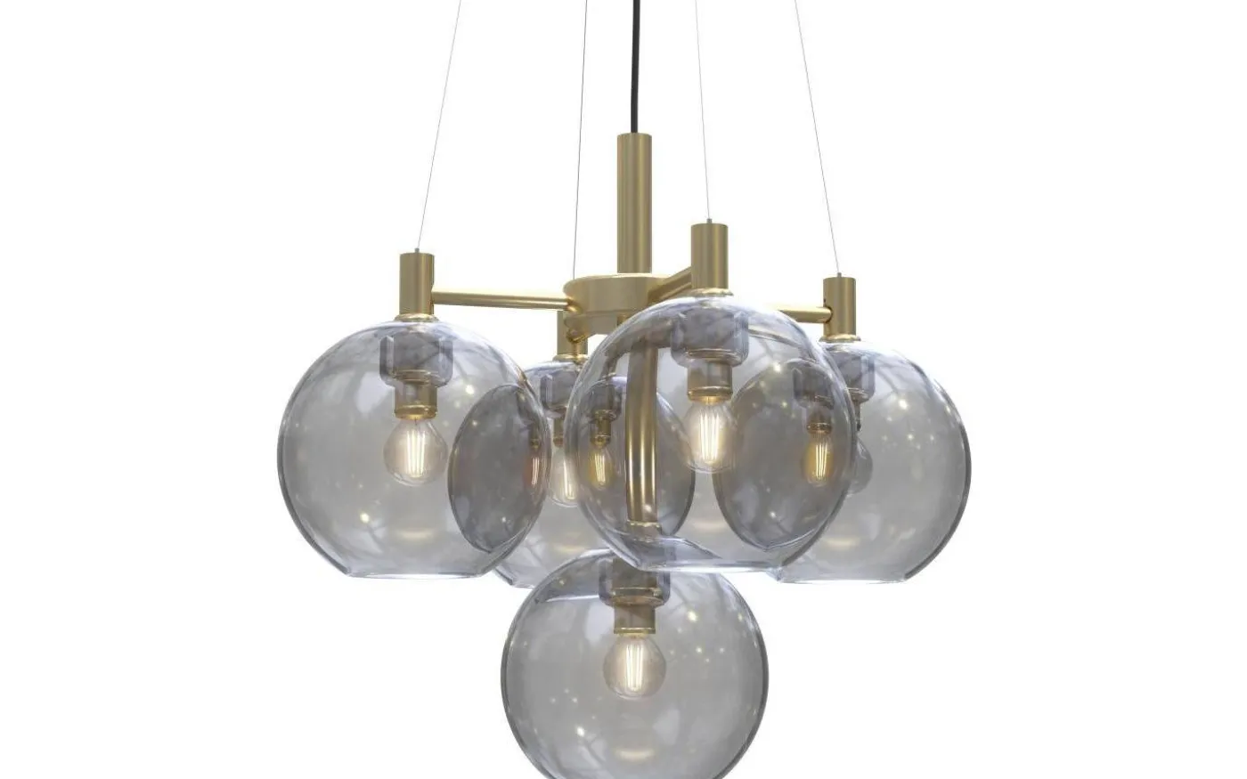 Vackra Gloria från Belid är en taklampa med stomme i mässingsfärgad metall och fem glaskupor i rökfärgat glas. Med sin tillverkning i Varberg tillverkas alla produkter från Belid av högsta, svenska kvalitet. Och Gloria är inget undantag!