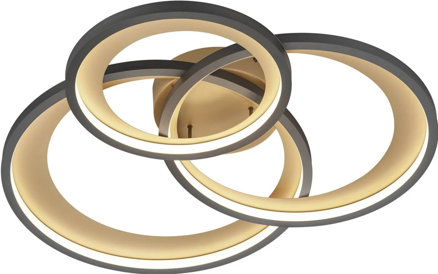 GRANADA – en effektiv blickfångare. Tvåfärgskonceptet anpassar sig till moderna möbler och färgvärldar och ger en behaglig belysning. Den har en SWITCH-dimmer som kan användas för att styra tre ljusstyrkenivåer med en vanlig ljusströmbrytare. Färgskalan svart/guld gör att taket kan skinande accentueras. Knäppglansen: Ljuset verkar särskilt varmt och mysigt. Dessutom använder armaturerna modern LED-teknik, vilket står för hög ljuskvalitet. LED-ljuskällor kännetecknas av lång livslängd och låg värmeutveckling. Ljuskälla: inklusive 1x SMD LED, 36W · 1x 4300lm, 3000K. Extra information: Takmontering, IP20, Dimbar via strömbrytare