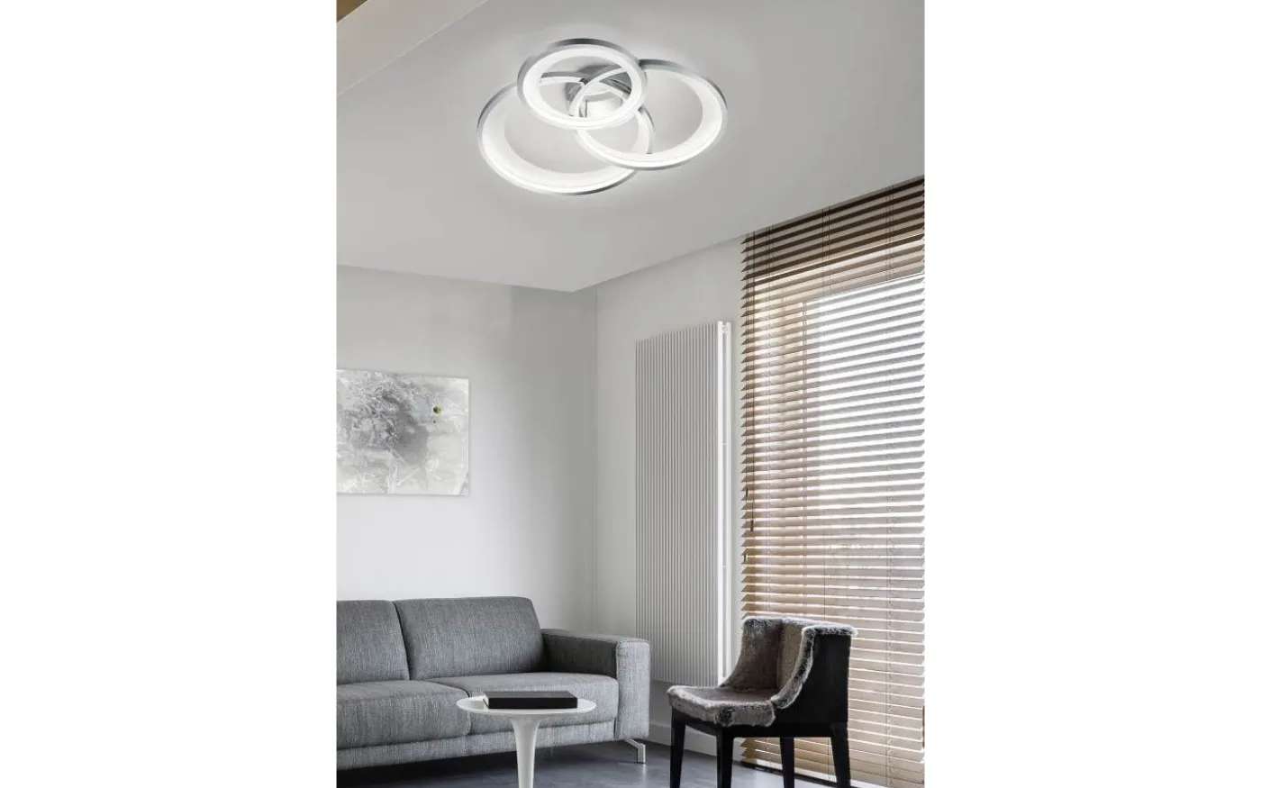 GRANADA – en effektiv blickfångare. Tvåfärgskonceptet anpassar sig till moderna möbler och färgvärldar och ger en behaglig belysning. Den har en SWITCH-dimmer som kan användas för att styra tre ljusstyrkenivåer med en vanlig ljusströmbrytare. Färgkombinationen vit/krom understryker den moderna stilen och kan kombineras fantastiskt. Dessutom använder armaturerna modern LED-teknik, vilket står för hög ljuskvalitet. LED-ljuskällor kännetecknas av lång livslängd och låg värmeutveckling. Ljuskälla: inklusive 1x SMD LED, 36W · 1x 4300lm, 3000K. Extra information: Takmontering, IP20, Dimbar via strömbrytare
