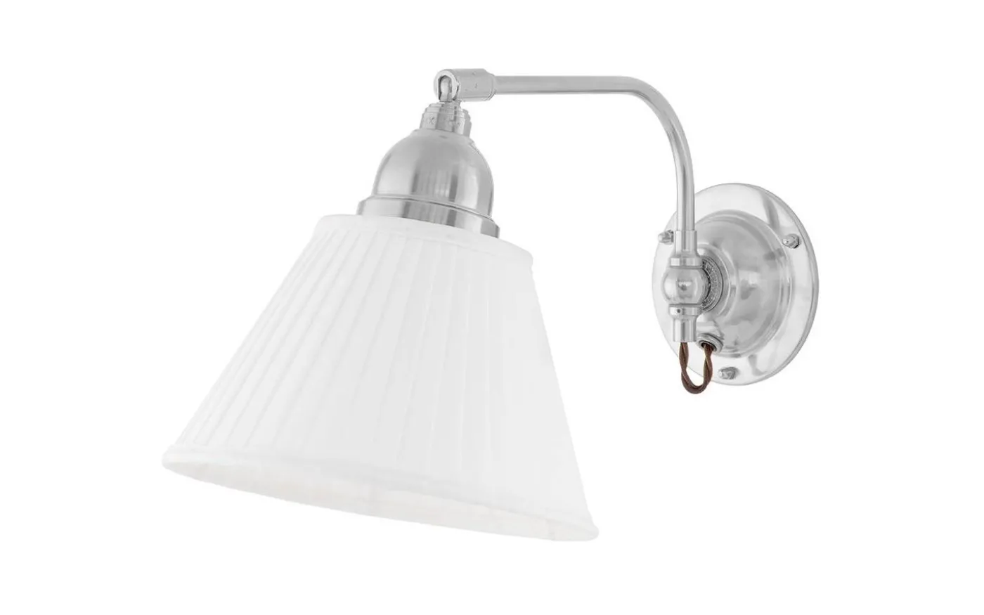 Klassisk väggarmatur med vrid- och riktbar arm, framförallt avsedd som sängbelysning. Kan med sitt flexibla fäste förses med antingen textil- eller metallskärm, eller möjligen en glasskärm, vilket dock lämpar sig sämre vid en säng. För fast montage. För att gå in med kuloledning kompletteras med en distansplatta.