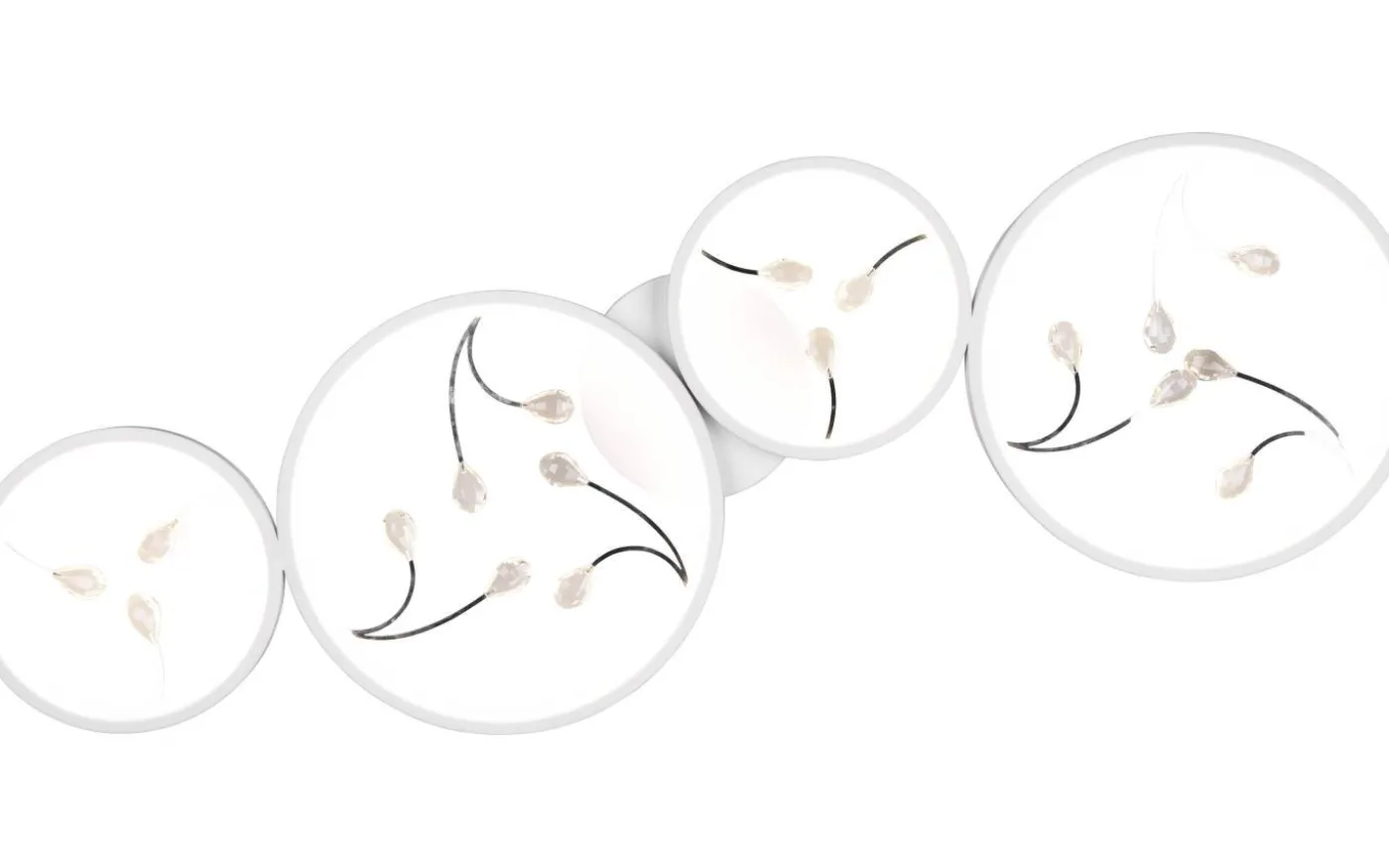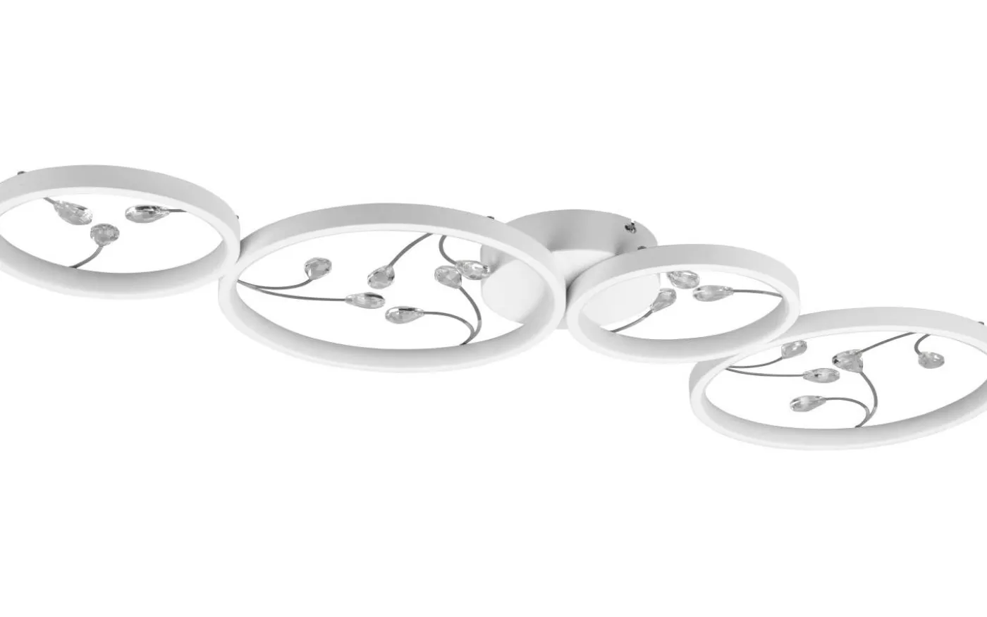 De tre ljuscirklarna på GROOVY taklampa frammanar den där speciella touchen i ditt vardagsrum. De fina glaselementen i cirklarna ger en elegant touch och blir ett verkligt dekorativt element i taket. En integrerad SWITCH-dimmer gör att ljusstyrkan på de inbyggda LED-lamporna kan regleras i tre steg via en ljusströmbrytare. Det perfekt formade utseendet i mattvitt smälter in i många inredningsstilar tack vare sin enkelhet. Dessutom har armaturerna modern LED-teknik, vilket står för hög ljuskvalitet. LED-ljuskällor kännetecknas av lång livslängd och låg värmeutveckling. Ljuskälla: inklusive 1x SMD, 37W · 1x 4800lm, 4000K. Extra information: 4000K, IP20, Ej lämplig för extern dimmer, Dimbar via strömbrytare, Vägg- och takmontering
