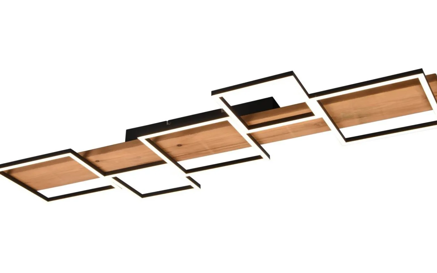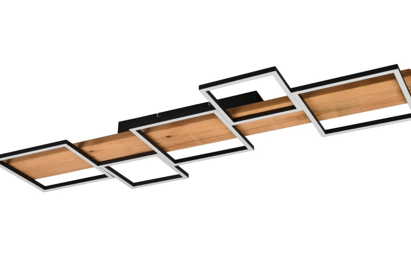 Taklampan Harper utlovar mysighet och elegans i ditt hem med sin moderna design. Kombinationen av material som trä och metall understryker den eleganta boendestilen och ger med de fem fyrkantiga ljuselementen en behaglig belysning ovanför matbordet eller i vardagsrummet. Dessutom är armaturen utrustad med en SWITCH-dimmer, vilket gör att ljusstyrkan kan graderas från 100 %, till 50 % och till 25 % via en vanlig ljusströmbrytare. Det naturliga träet och metallen i mattsvart gör lampan till en riktig pärla i ditt vardagsrum, som garanterat blir en blickfångare. Dessutom har armaturerna modern LED-teknik, vilket står för hög ljuskvalitet. LED-ljuskällor kännetecknas av lång livslängd och låg värmeutveckling. Ljuskälla: inklusive 1x SMD LED, 42W · 1x 5700lm, 3000K. Extra information: IP20, Ej lämplig för extern dimmer, Dimbar via strömbrytare, Vägg- och takmontering