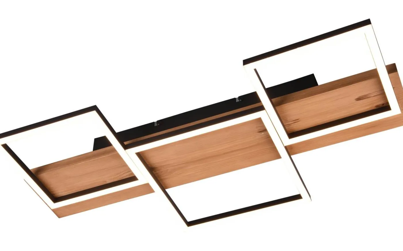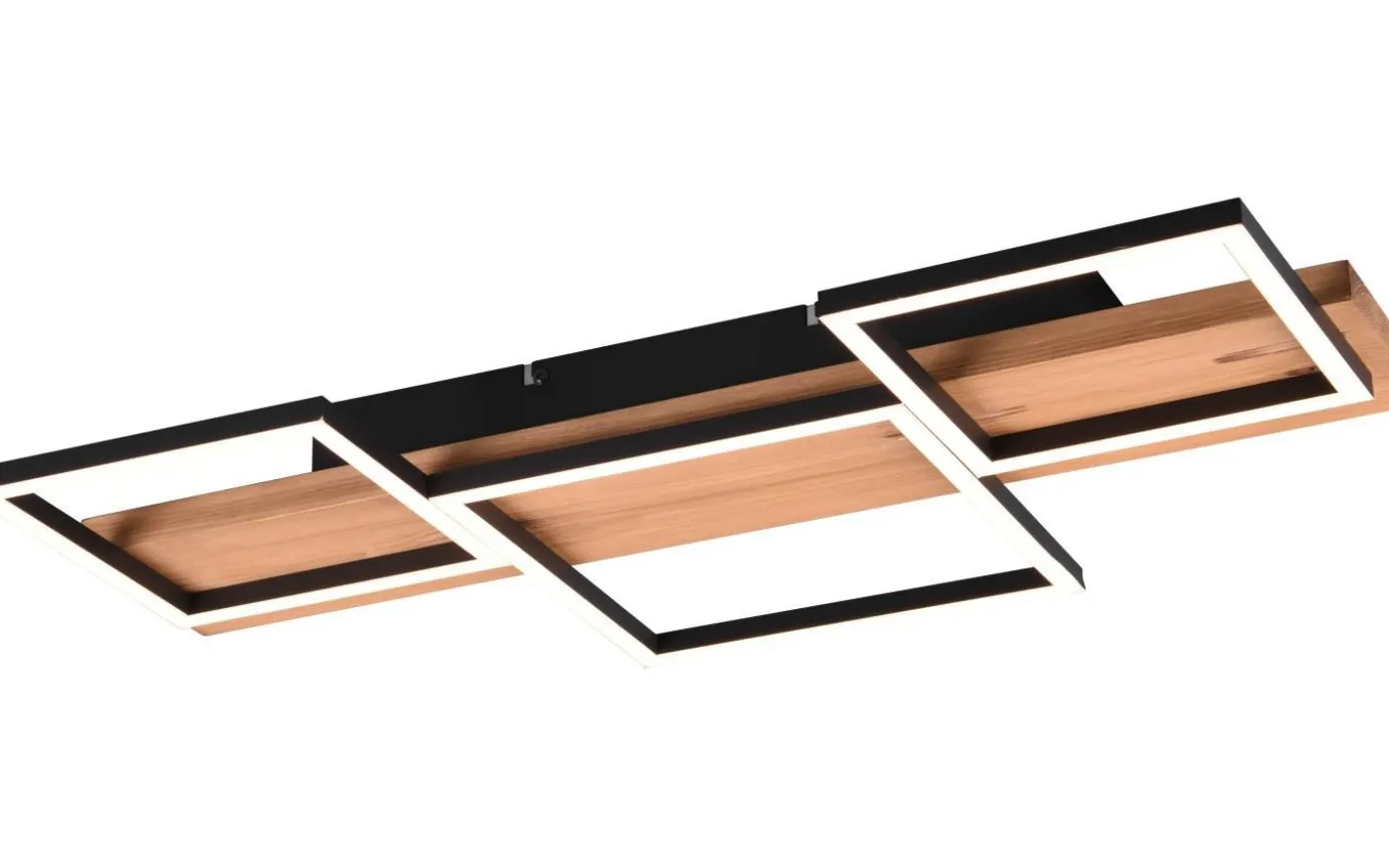Taklampan Harper utlovar mysighet och elegans i ditt hem med sin moderna design. Kombinationen av materialen trä och metall understryker den eleganta boendestilen och ger med de tre fyrkantiga ljuselementen en behaglig belysning ovanför matbordet eller i vardagsrummet. Dessutom är armaturen utrustad med en SWITCH-dimmer, vilket gör att ljusstyrkan kan graderas från 100 %, till 50 % och till 25 % via en vanlig ljusströmbrytare. Det naturliga träet och metallen i mattsvart gör lampan till en riktig pärla i ditt vardagsrum, som garanterat blir en blickfångare. Dessutom har armaturerna modern LED-teknik, vilket står för hög ljuskvalitet. LED-ljuskällor kännetecknas av lång livslängd och låg värmeutveckling. Ljuskälla: inklusive 1x SMD LED, 30W · 1x 4000lm, 3000K. Extra information: IP20, Ej dimbar, Ej lämplig för extern dimmer, Dimbar via strömbrytare, Vägg- och takmontering