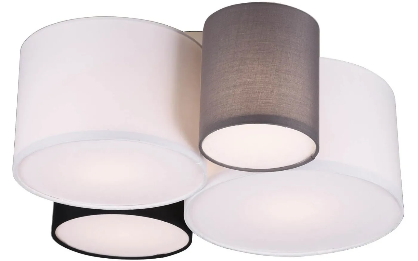Tyglampor skapar en mysig atmosfär och anses vara en klassiker inom dekorativ belysning. Taklampan HOTEL med fyra ljuskällor är särskilt effektiv i vardagsrum och sovrum. Den ger harmoniska ljusaccenter och ger ditt hem en mysig atmosfär. Två vita, en svart och en grå tygskärm skapar tillsammans en harmonisk kombination som kan användas på en mängd olika sätt. För modern och pålitlig belysning rekommenderas användning av en LED-lampa. Den erbjuder hög ljuskvalitet, är mångsidig och övertygar med jämn belysning. Dess långa livslängd och låga värmeutveckling gör den till det perfekta valet för en mängd olika användningsområden. Ljuskälla: exklusiv 4x E27 · max. 42W. Extra information: Takmontering, IP20, Lampa(or) ingår ej