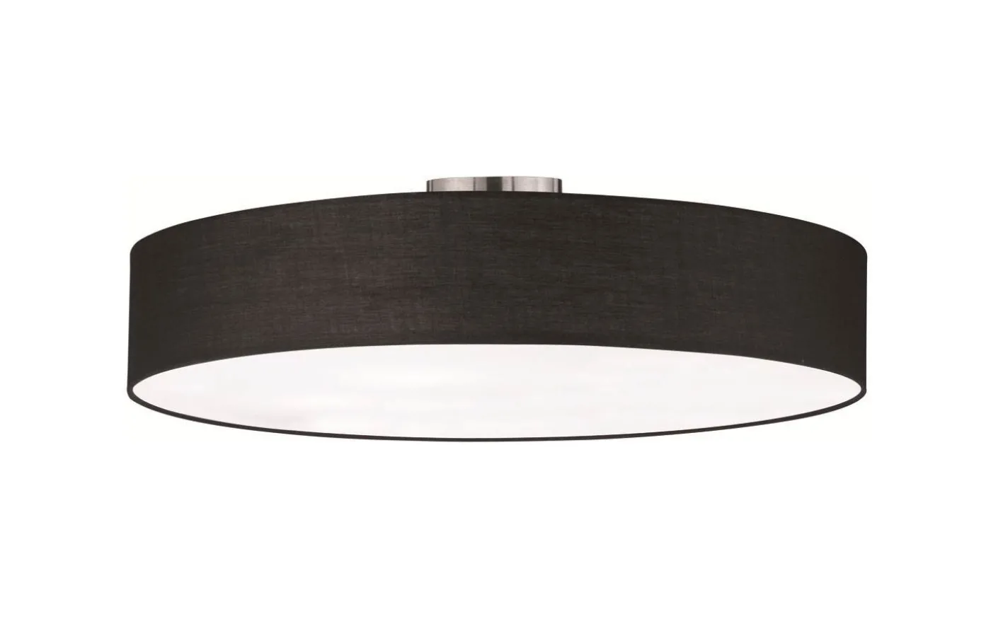 Taklampan HOTEL imponerar med sin kombination av enkel elegans och mysig karaktär och ger moderna bostadsutrymmen ett individuellt utseende med en diameter på 65 cm. Den svarta tygskärmen skapar ett atmosfäriskt samspel mellan ljus och skugga och är ett verkligt blickfång i vardagsrum, sovrum eller entréer. Taklampan med fem ljuskällor kan monteras med eller utan skydd för bländfri sikt och är 17 cm hög med den kromfärgade upphängningen. De fem E27-sockelrna kan utrustas med ljuskällor som inte överstiger 60 W. Ljuskälla: exklusivt 5x E27 · max. 60 W. Extra information: Takmontering, IP20, Lampa(or) ingår ej