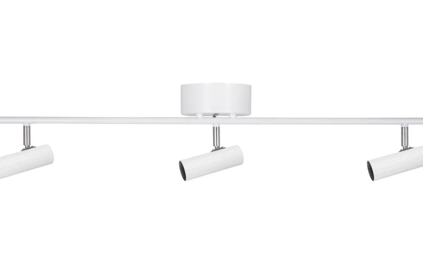 Hubble takspotlight från Globen Lighting är en modern avlång takspotlight med tubformade och räfflade skärmar i vitfärgad metall med kromfärgade detaljer. Takspotlighten har tre vinklingsbara lamphuvuden så att du enkelt kan rikta ljuset efter önskemål och behöv.