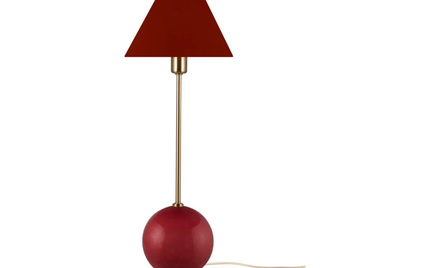 Iris från Globen Lighting är en charmig bordslampa med färgstark personlighet. Den har en rund lampfot i färgat glas med dekorativa luftbubblor och en matchande tygskärm i bomull. Varje lampa är unik tack vare glasets bubblor.