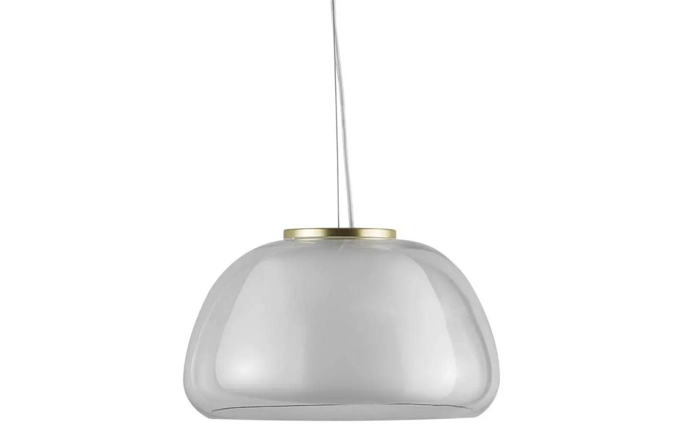 Jelly taklampa från danska Nordlux består av två lager glas med den inre skärmen i vitt opalglas och den yttre i klarglas, vilket tillsammans ger ljuset ett mjukt och varmt sken. En liten detalj är det fina mässingshöljet som ger pendeln ett exklusivt uttryck.