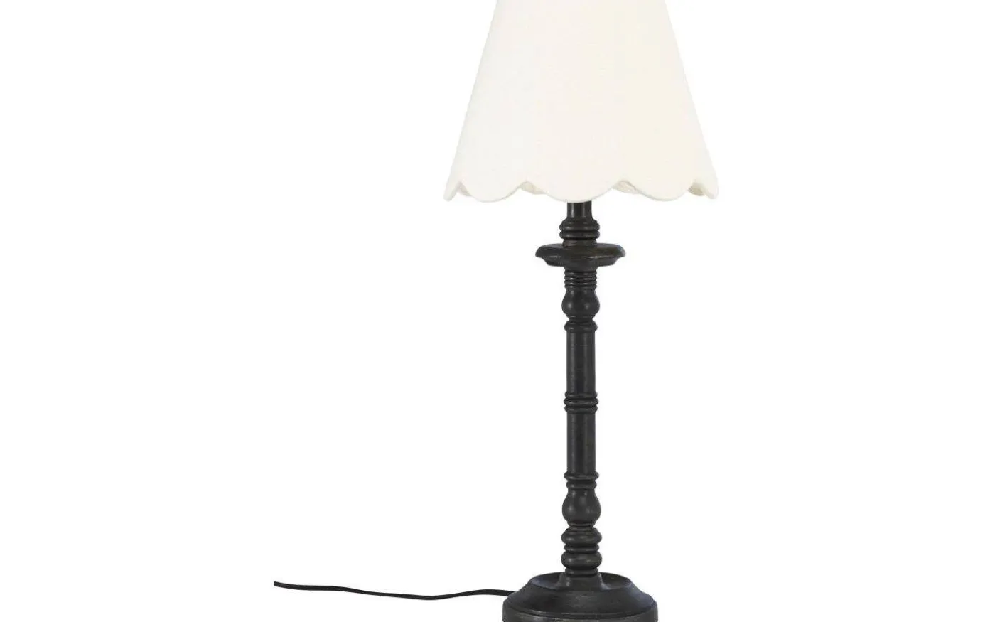Joy bordslampa från välkända PR Home är en dekorativ bordslampa inspirerad av gamla ljusstakar. Lampfoten har svartbrun finish med naturliga skiftningar som gör varje lampa unik. Skärmen är i linnetyg med fin struktur, lätt utställd och har en vågig form nedtill.