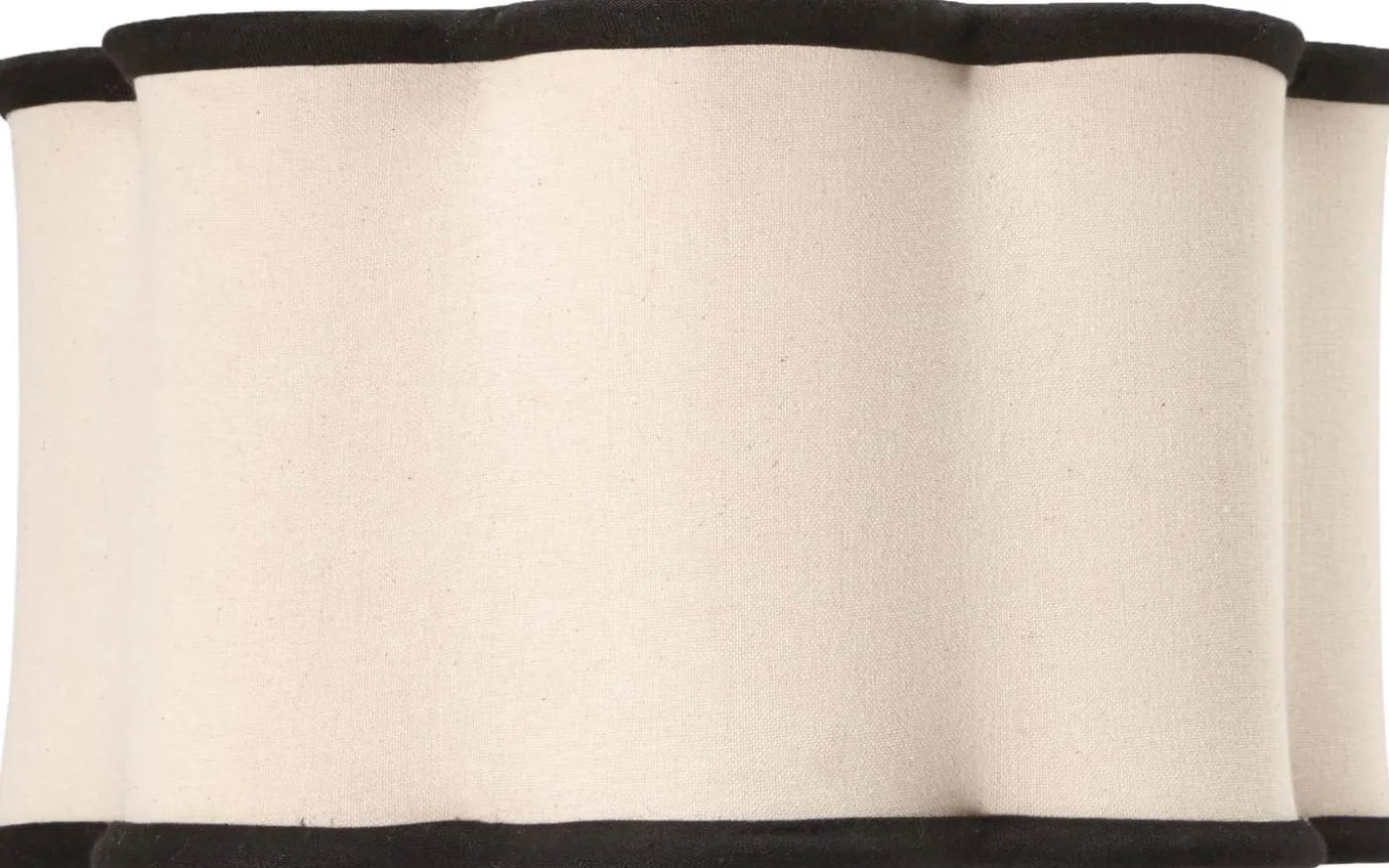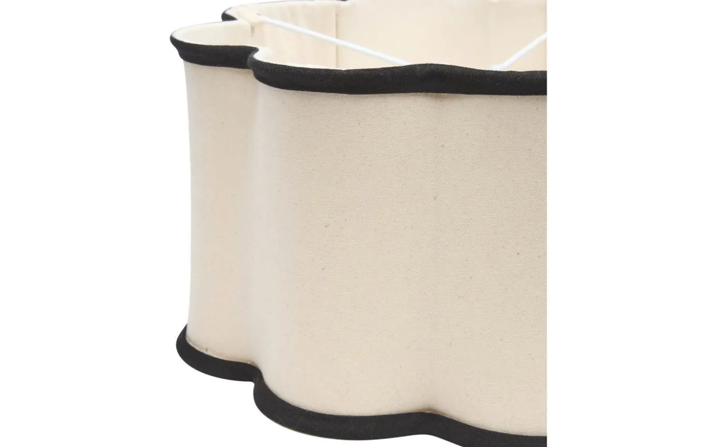 Skärmen Judy från PR Home är en blomformad skärm tillverkad i ekologisk bomull med svarta kantband i ovan-/ och underkant som framhäver dess form på djupet. Denna vackra skärm har ett E27-ringfäste och kan användas både som lampskärm till lampfot eller som taklampa ihop med ett takupphäng.