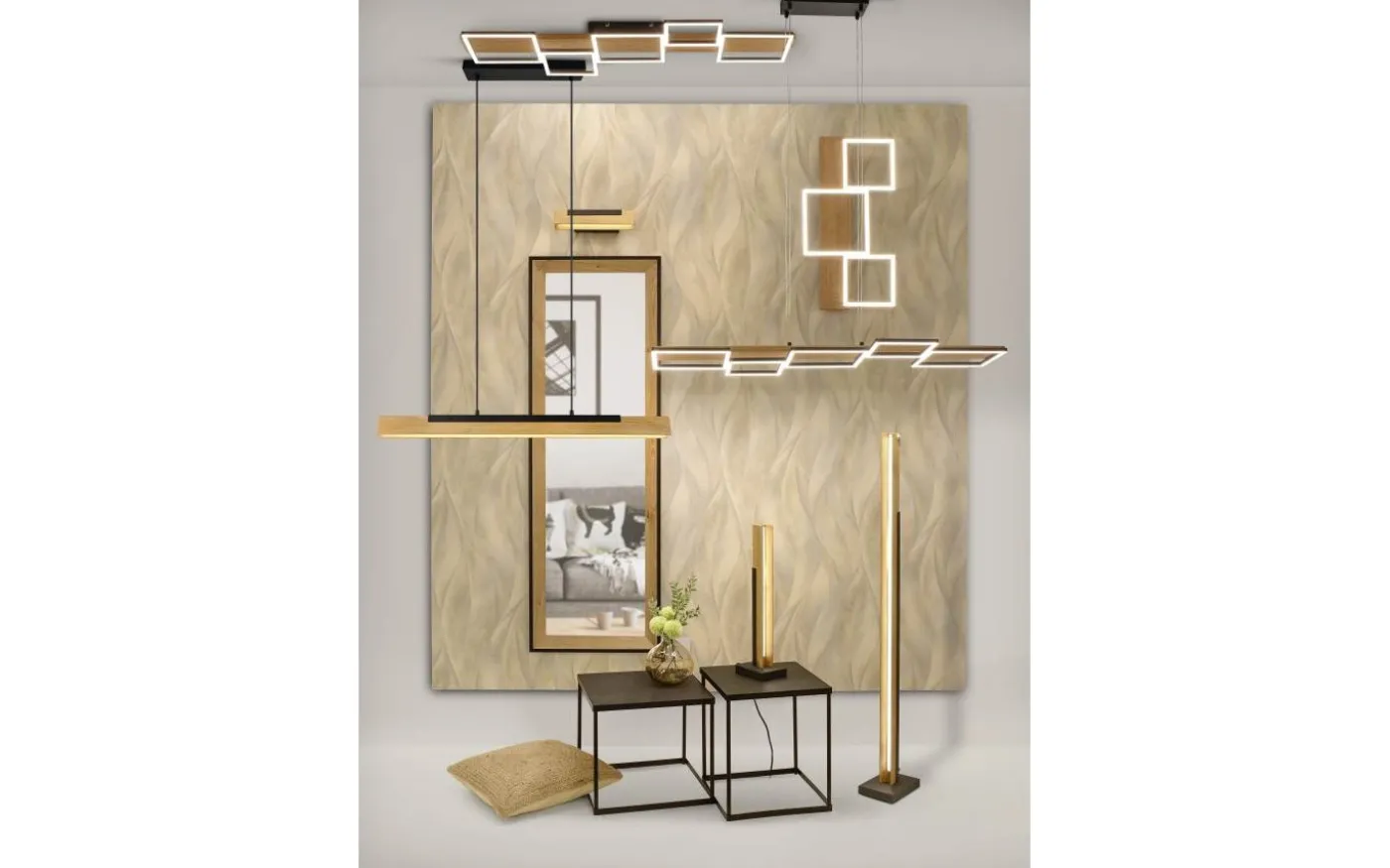 KERALA golvlampa kan enkelt integreras i en mängd olika bostadsutrymmen tack vare sina raka linjer. Tack vare det högkvalitativa hantverket i trä och metall övertygar armaturen längs hela linjen och sätter dekorativa ljusaccenter med sin iögonfallande design. Ljusstyrkan kan enkelt justeras med hjälp av en 4-faldig knapptryckning på armaturen. Färgdesignen i mattsvart i kombination med det naturliga träet skapar en mysig atmosfär i ditt hem. Dessutom har armaturerna modern LED-teknik, vilket står för hög ljuskvalitet. LED-ljuskällor kännetecknas av lång livslängd och låg värmeutveckling. Ljuskälla: inklusive 1x SMD, 16W · 1x 1950lm, 3000K. Extra information: 4-nivå pekfunktion, IP20