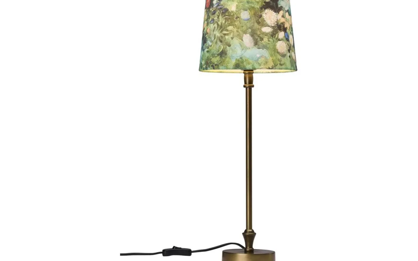 Liam bordslampa från välkända PR Home är en enkel och stilren bordslampa med lampfot i mässing och lampskärm med tryck från den folkkäre konstnären Carl Larsson målningar. Lampskärmen har en ljus insida och rullade kanter för att förstärka det vackra trycket