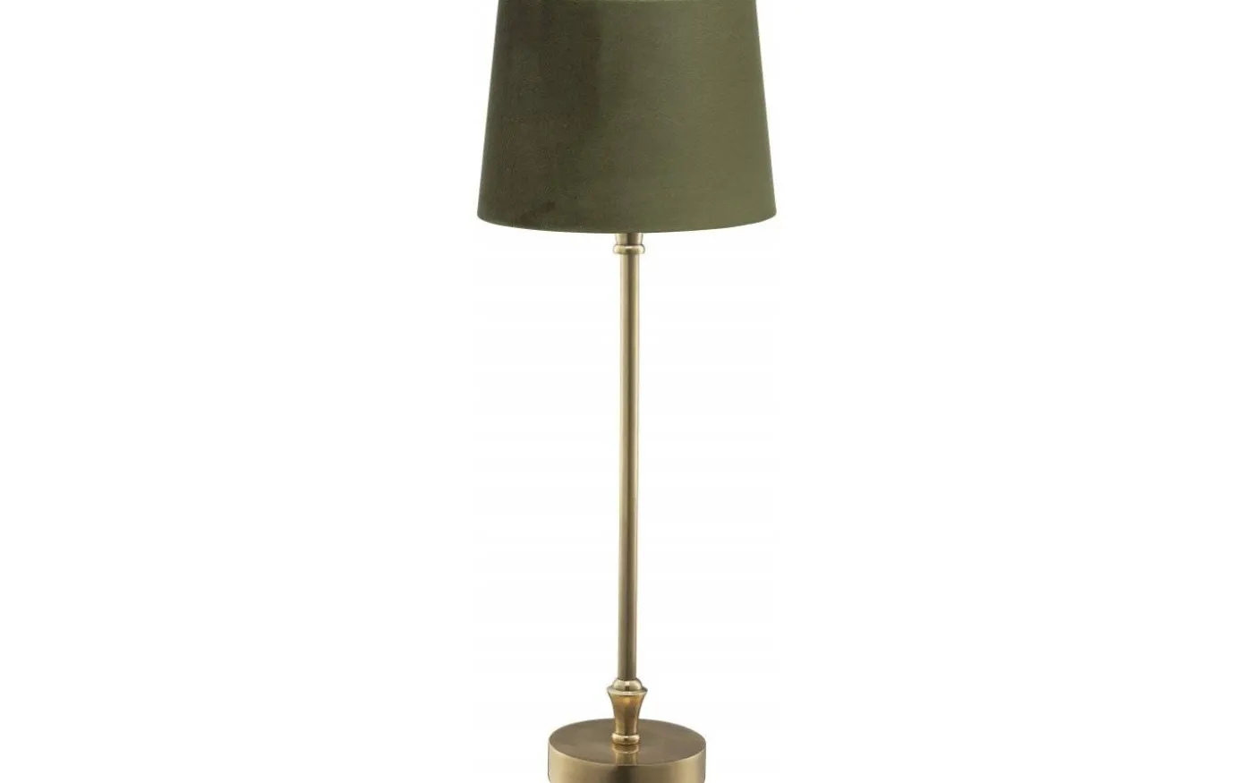 Bordslampan Liam är en stilren bordslampa, från välkända PR Home, med fot i mässingsfärgad metall och skärm i grön sammet. Mässingsfärgen har en antik och därmed lite mörkare finish. Med sin höjd på 56 cm och diameter på 20 cm gör Liam sig precis lika bra i fönsterkarmen som på ett avlastningsbord och blir en fin inredningsdetalj i ditt hem.