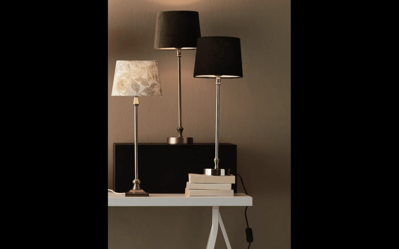 Denna bordslampa levereras med 1,5 meter lång sladd med strömbrytare och stickkontakt för vägguttag.