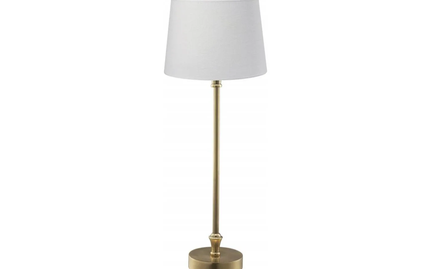 Bordslampan Liam är en stilren bordslampa, från välkända PR Home, med fot i mässingsfärgad metall och skärm i vit bomull. Mässingsfärgen har en antik och därmed lite mörkare finish. Med sin höjd på 56 cm och diameter på 20 cm gör Liam sig precis lika bra i fönsterkarmen som på ett avlastningsbord och blir en fin inredningsdetalj i ditt hem.