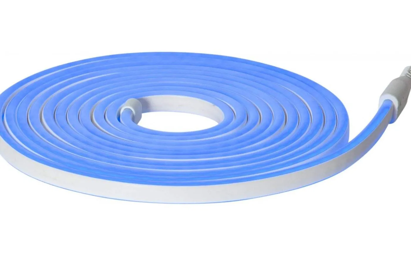 Flexibel, platt neon ljusslang för dekoration. Passar för både inom- och utomhus. Slangen är 5m lång, vit och har 480 blå LED-ljuskällor. Lyser på 2 sidor.
