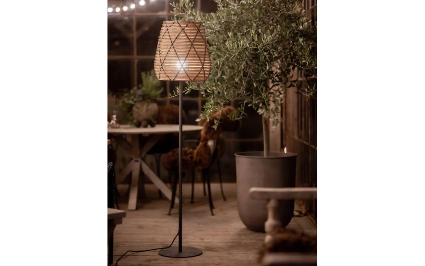 Lollo lampskärm från välkända Pr Home är en utomhusskärm i konstrotting. Konstrotting är ett tåligt material som klarar väder och vind. Den flätade strukturen skapar ett vackert ljusspel.