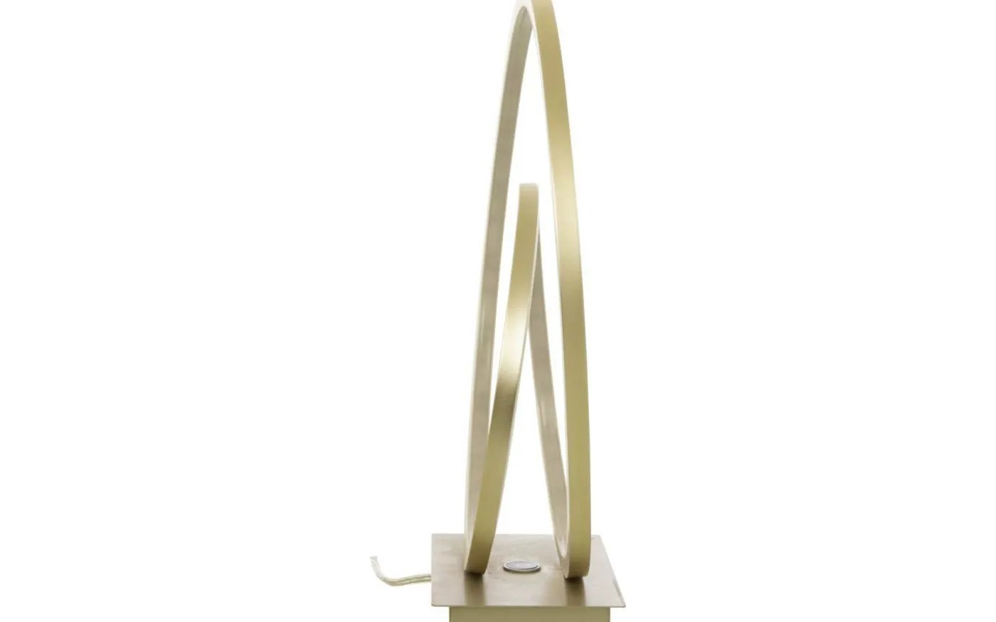 Loop bordslampa i champagnefärgad metall. Integrerad 14W LED som kan dimmas med en 3-stegs dimmer på lampfoten. Lampan avger ett varmt vitt ljus som ger bra färgåtergivning. Ansluts med plug-in kontakt. Spännande design.