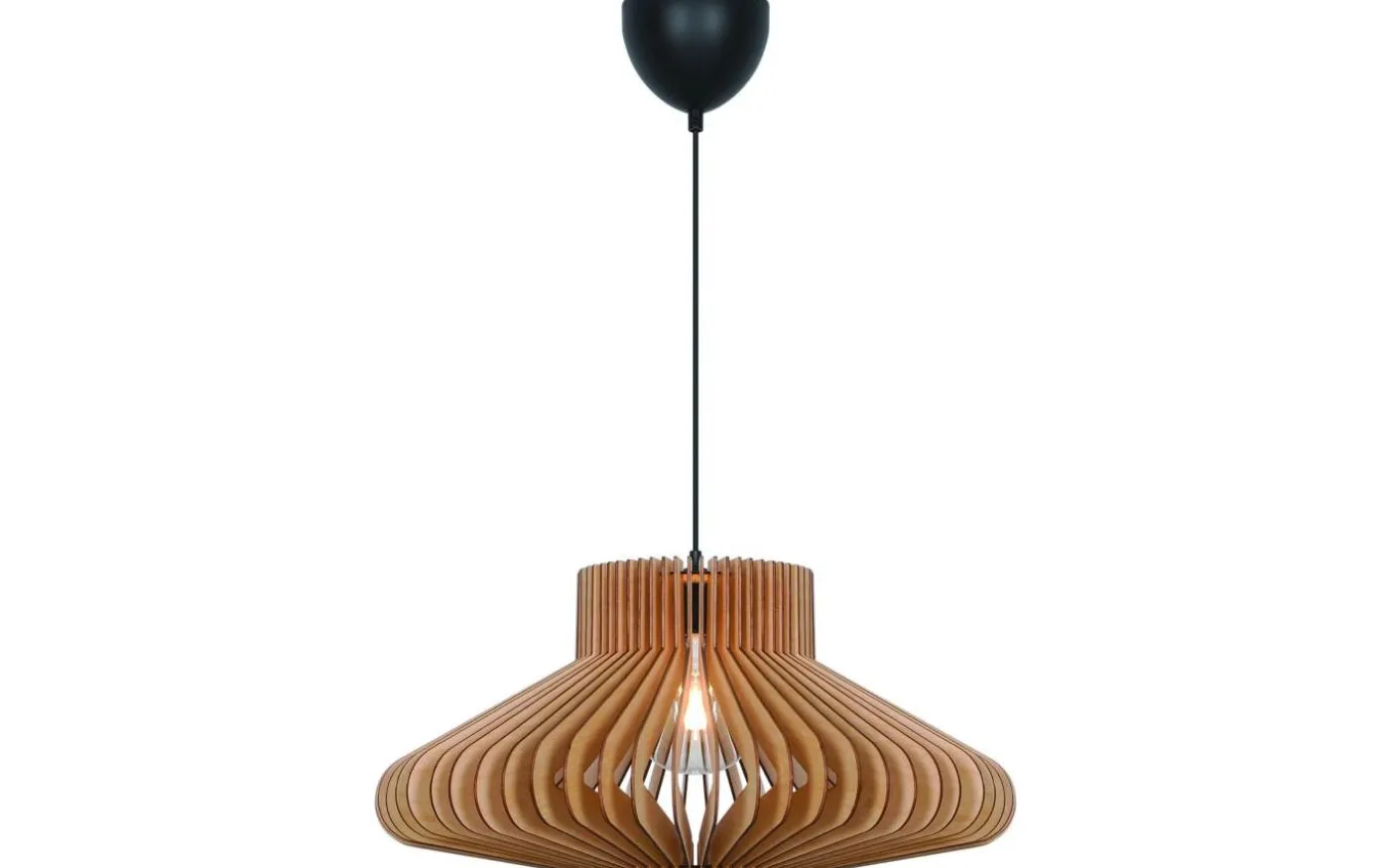 Manago har en skärm av trälameller i en grafisk silhuett som skapar en varm och behaglig ljusfördelning. Välj ditt eget utseende genom att montera trälamellerna på det sätt du föredrar. Perfekt att hänga i ett hörn eller över ett matbord.