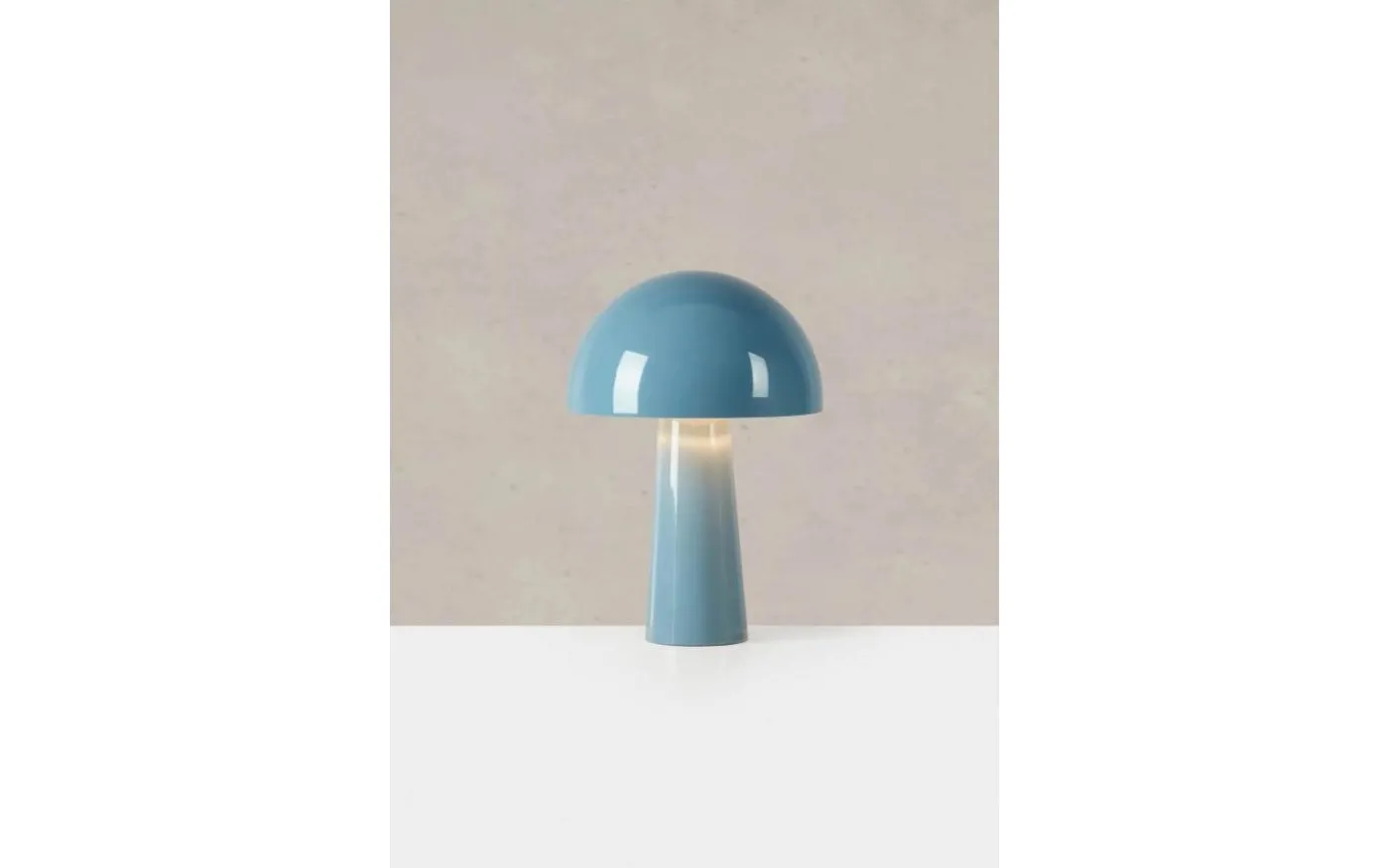 Mantar bordslampa från Markslöjd. Skärm och bas i blåfärgad metall. 2m transparent pvc kabel med brytare och väggkontakt. 1xE14, Max 40W. Klass II. Ljuskälla ingår ej.
