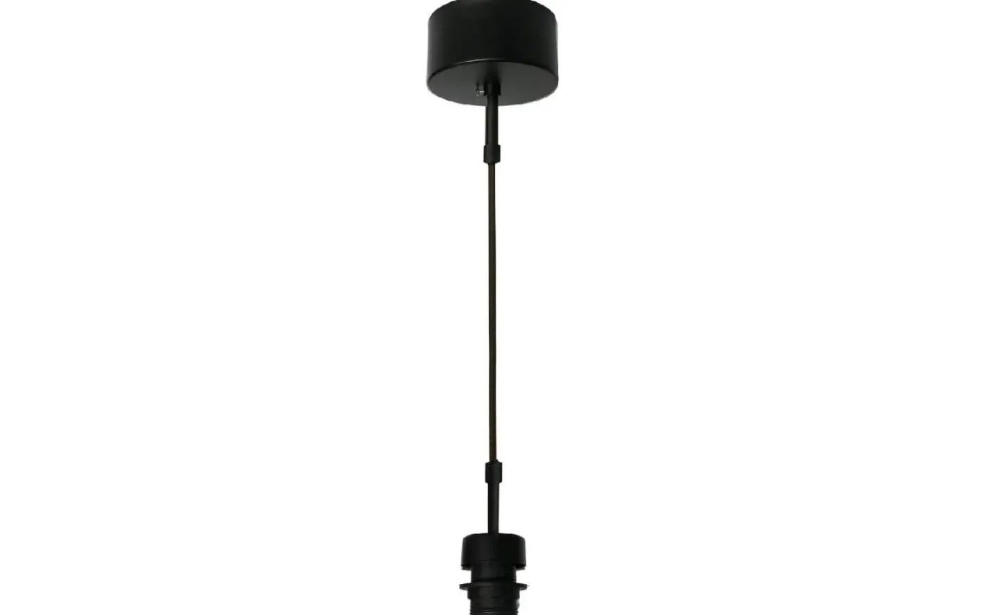 Levereras med 1,3m lång anslutningskabel och takkopp för krokupphäng. Ljuskälla och takskärm köpes separat.