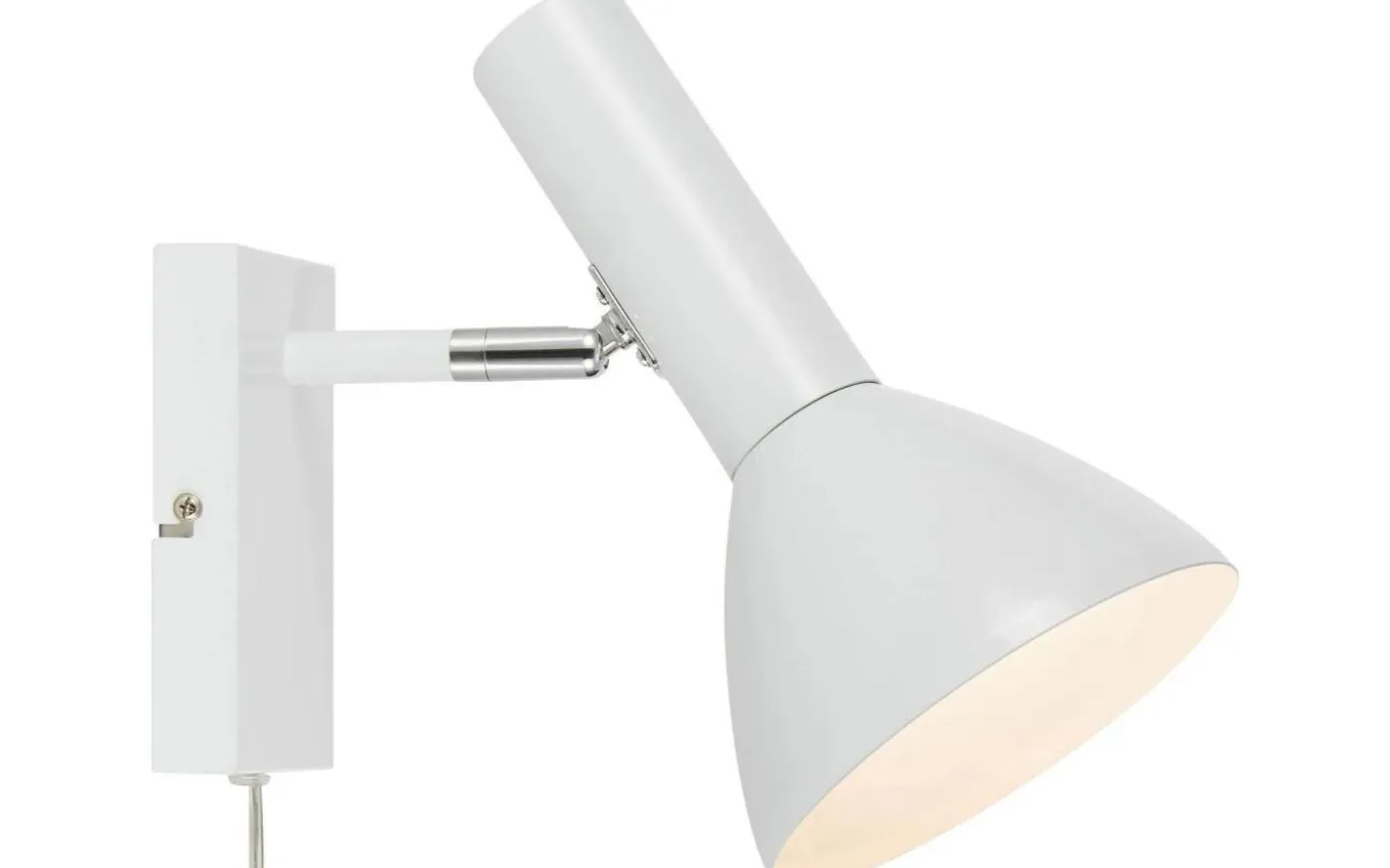 Metro är en funktionell vägglampa i blank vit metall med detaljer krom. Justerbart lamphuvud så att du enkelt kan rikta ljuset dit du behöver det och gör att lampan passar bra som läslampa vid sängen eller soffan. Strömbrytare på lamphuvudet. Finns även i serie som golvlampa och bordslampa.
