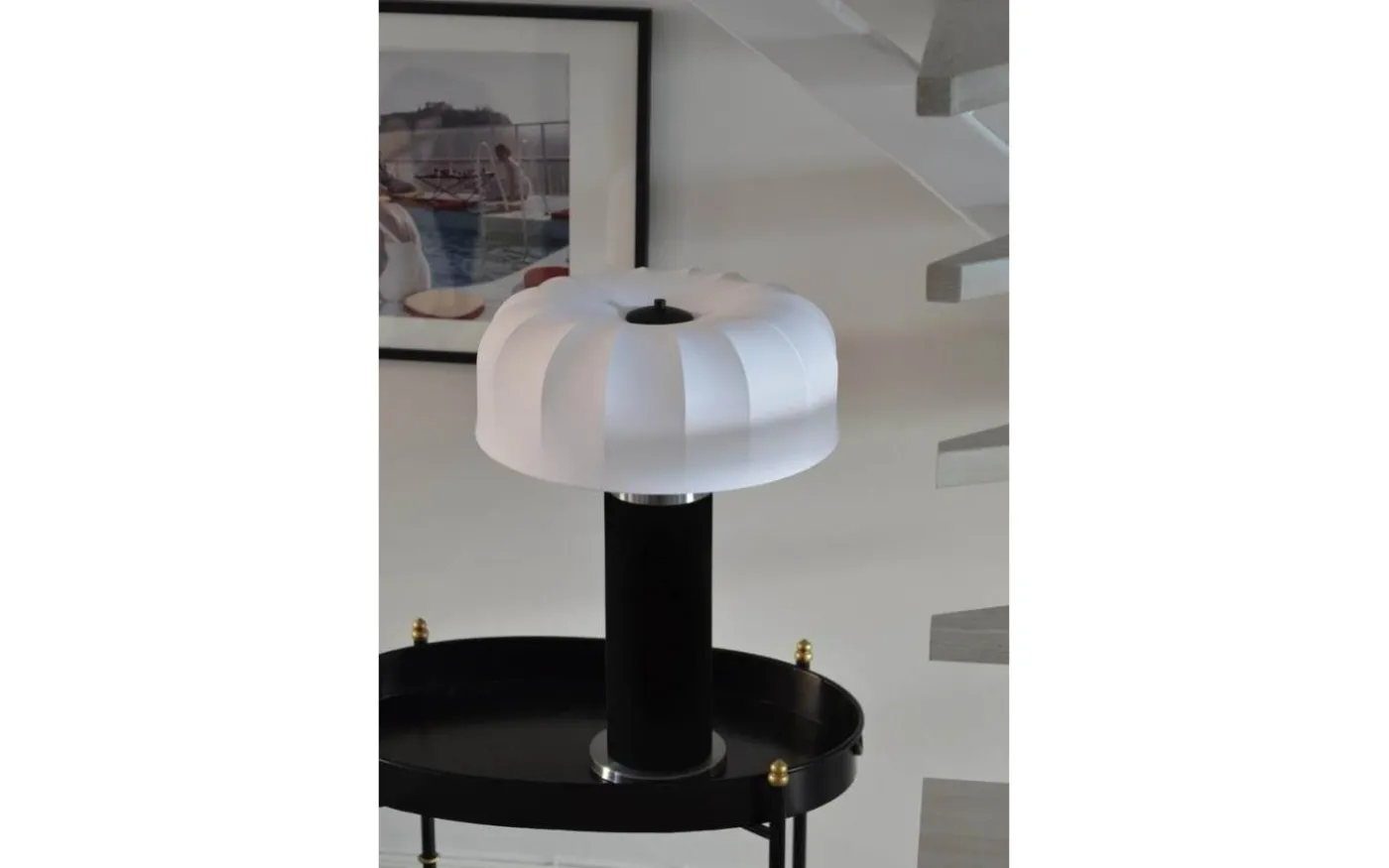 Muschroom lampskärm Ø35 cm i Stretch Vit Lyx har en rundad, modern design med elegant veckad textil. Den exklusiva vita ytan sprider ljuset mjukt och skapar en stilfull atmosfär. En unik lampskärm som passar perfekt på en bordslampa.