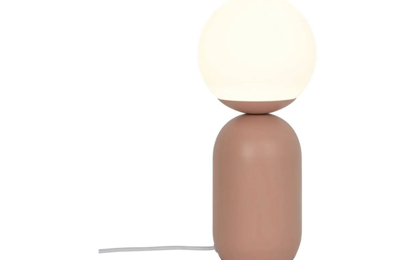 Notti bordslampa från danska Nordlux har fina former som återspeglar en elegant design. Den stora kupolformade glasskärmen i opalvitt glas utgör en fin kontrast till den lätta metallsockeln som bidrar till visuell volym och ett mjukt ljus.