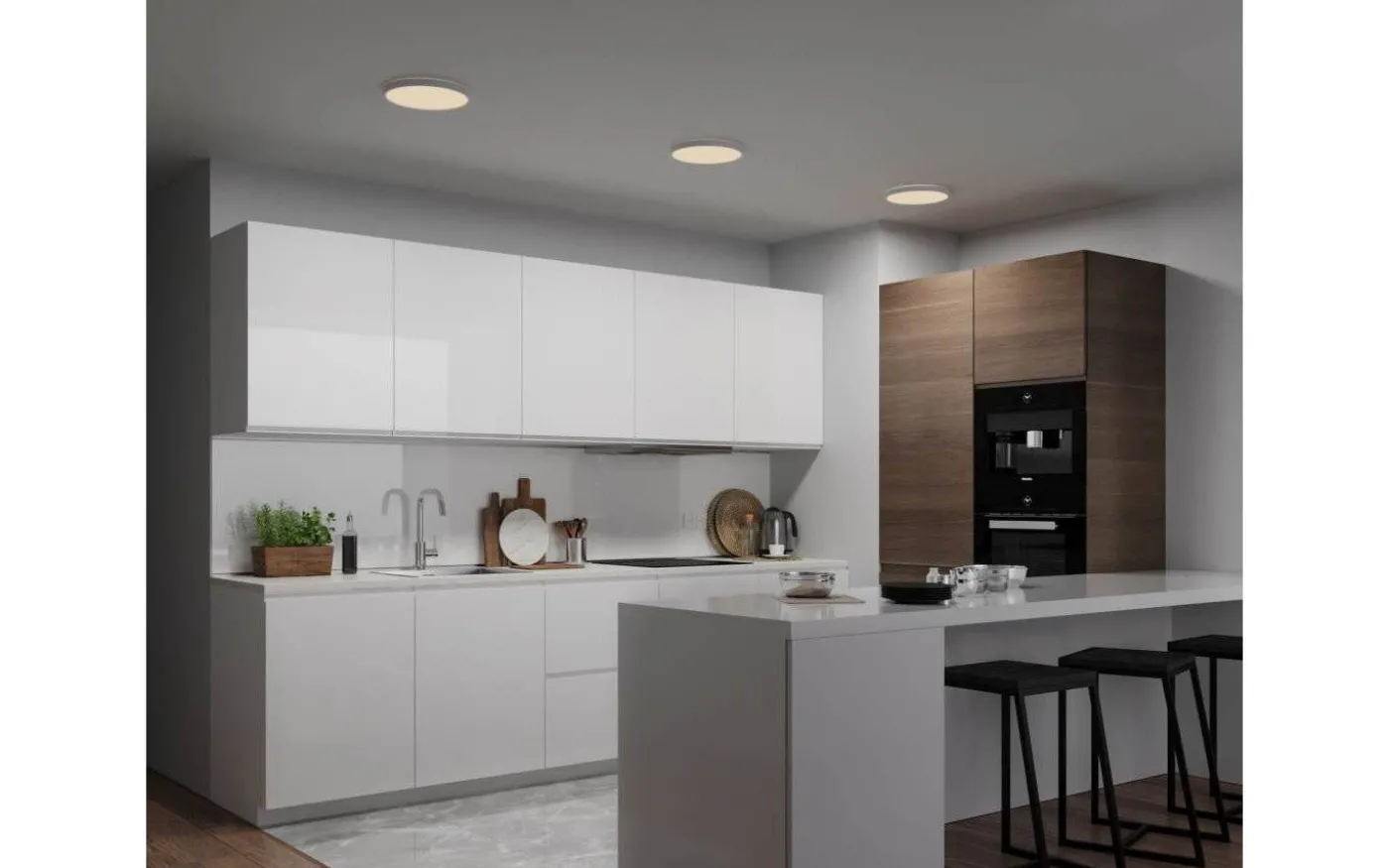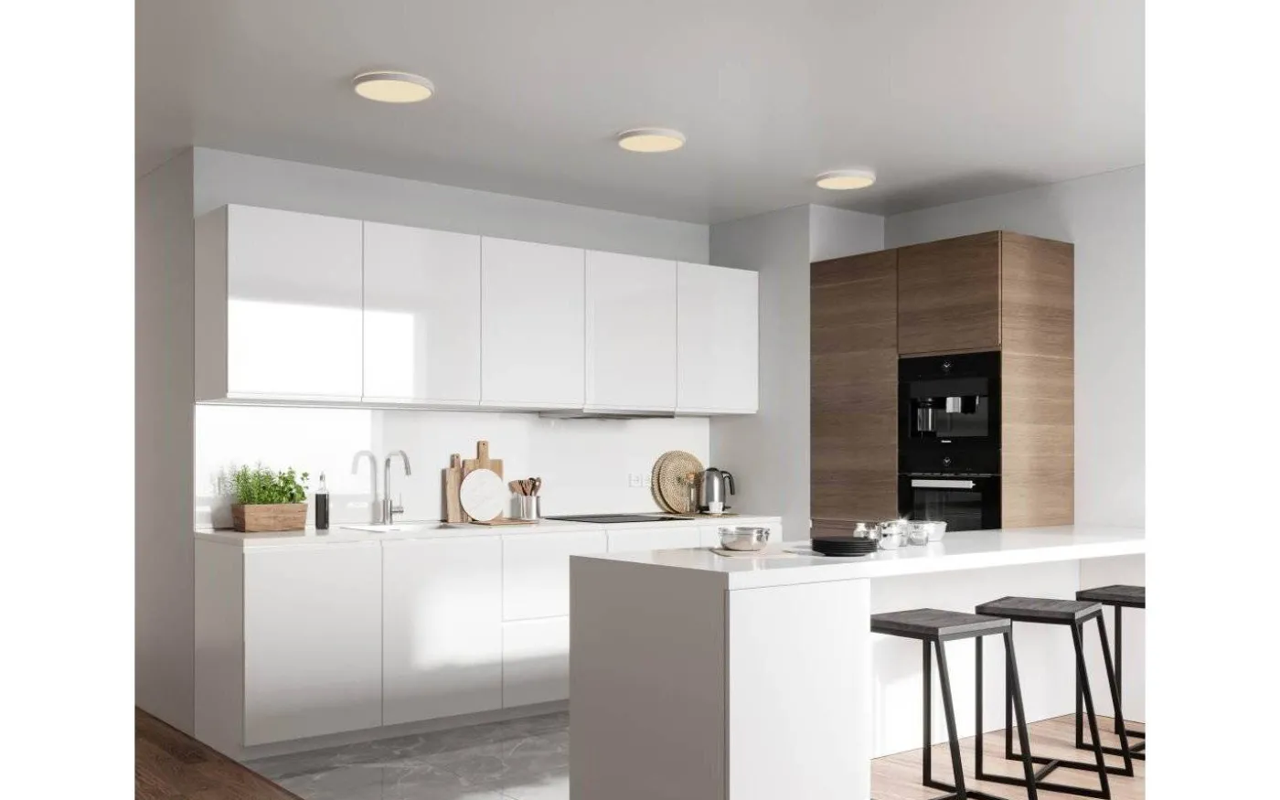 Oja plafond från danska Nordlux. Plafonden har inbyggd 3-stegs dim vilket innebär att du enkelt kan justera färgtemperaturen från kallt till varmt ljus med din väggströmbrytare.