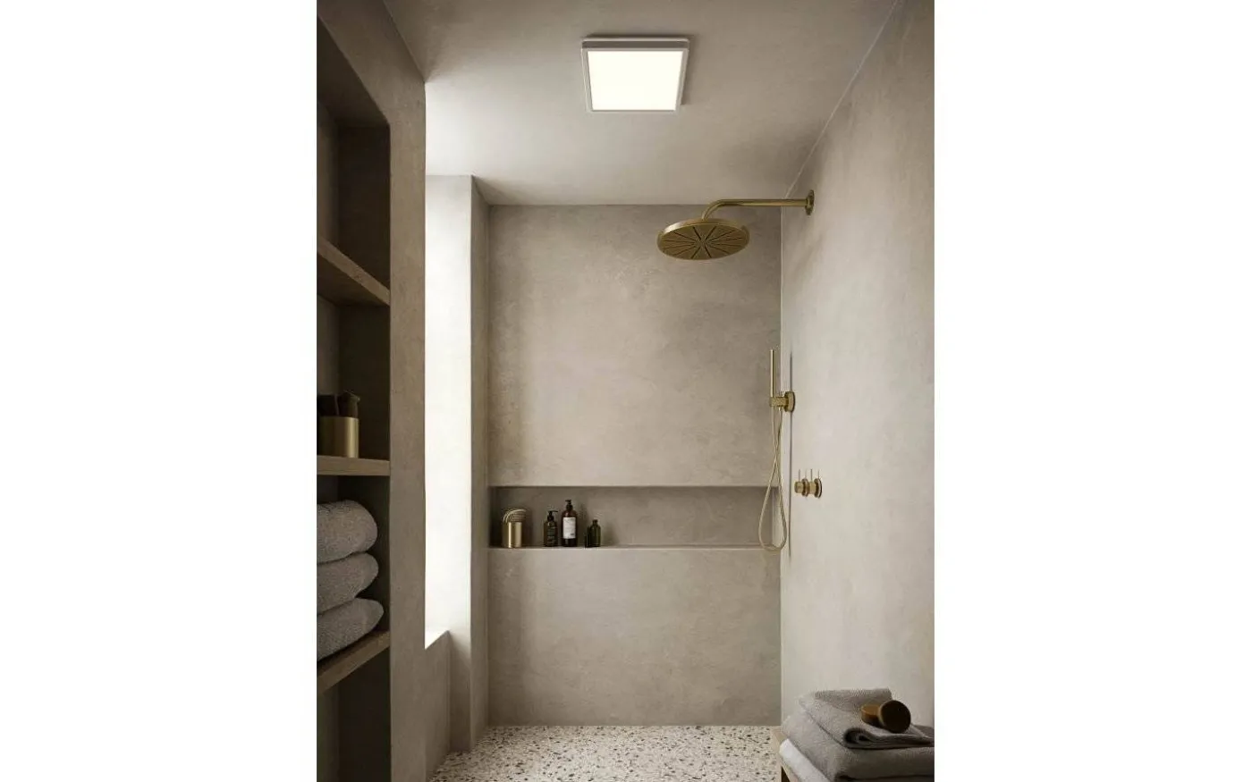 Oja Square plafond från danska Nordlux. Plafonden har inbyggd 3-stegs dim vilket innebär att du enkelt kan justera färgtemperaturen från kallt till varmt ljus med din väggströmbrytare.
