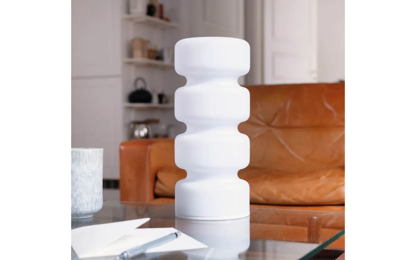 Bordslampa i opalvit glas med spår. Slå på och av på sladden.