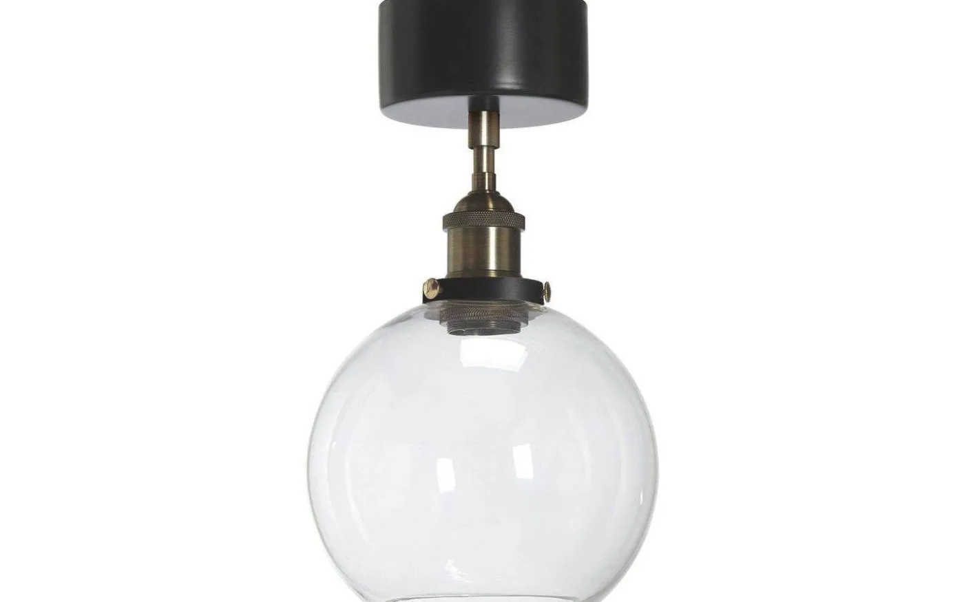 Omega plafond från välkända PR Home är av klassisk design med metallchassi i mattsvart och mässing som kombineras med ett handgjort klarglas. Då glaset är handgjort kan det förekomma enstaka luftbubblor i glaset och även en viss ojämnhet i glastjocklek över glasytan.