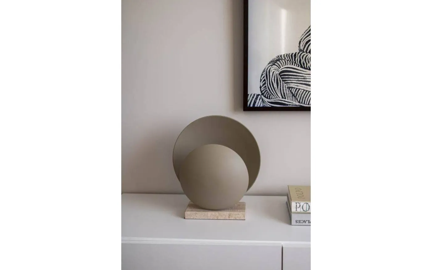Fina bordslampan Orbit bordslampa är designad av Tess Palm för välkända varumärket Globen Lighting. Detta är en bordslampa som är gjord i metall med en mattbeige finish och har en läcker lampfot i travertin. Placera Orbit bordslampa på ett sidobord och få en elegant inredningsdetalj i ditt hem!