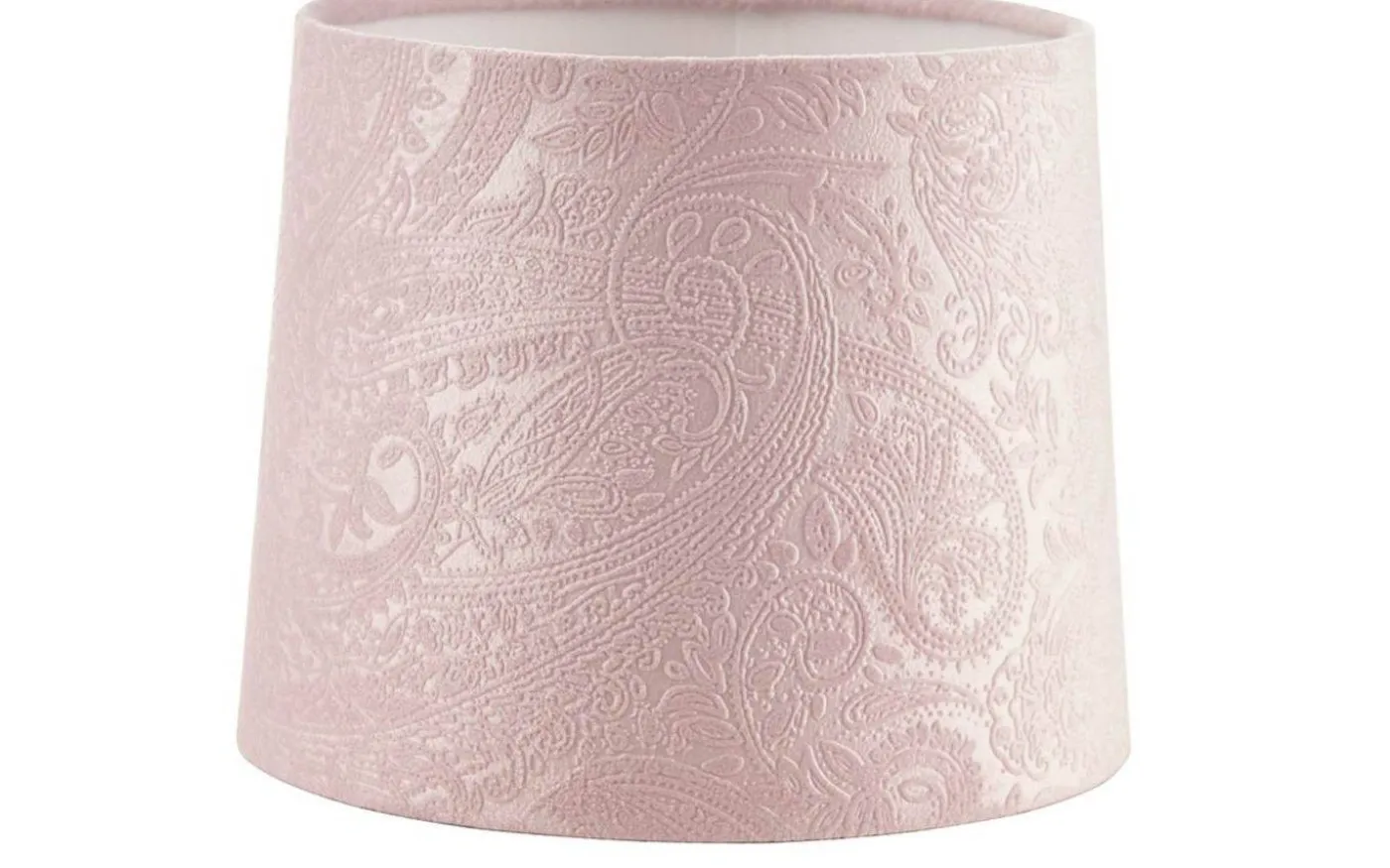 Paisley lampskärm från Oriva är en lampskärm i sammet med vackert mönster. Lampskärmen har klofäste som fäst på en klotformad ljuskälla.