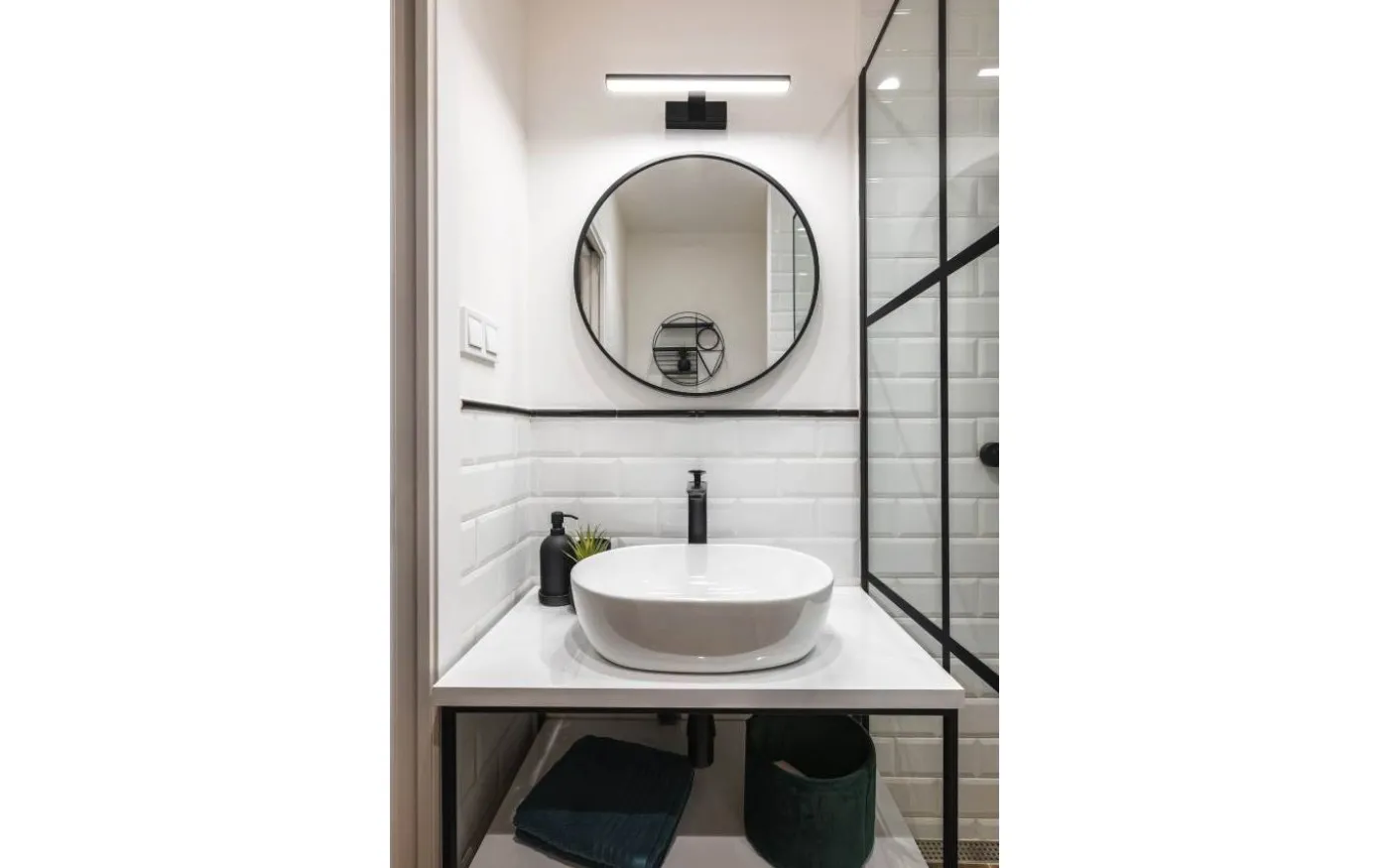 Spegellampan PANDELLA 1 är lämplig för användning i badrummet på grund av dess IP44-skydd mot vattenstänk. Produkten har en svart aluminium och plastfinish. De inbyggda lysdioderna är gömda under det vita plasthöljet och producerar ett starkt neutralt vitt ljus. Vägglampan smälter sömlöst med moderna interiörer och ger stilfull belysning över spegeln i badrummet.