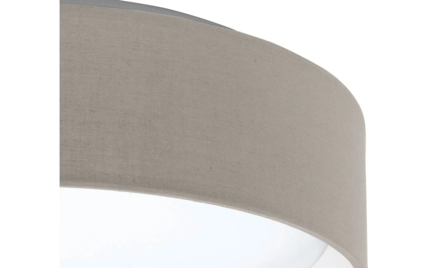 Denna takarmatur från serien PASTERI är gjord av vitt stål, tyg i taupe och plast. Den har skyddsisolering och utrustad med en utbytbar LED-lampa för ett varmvitt ljus.