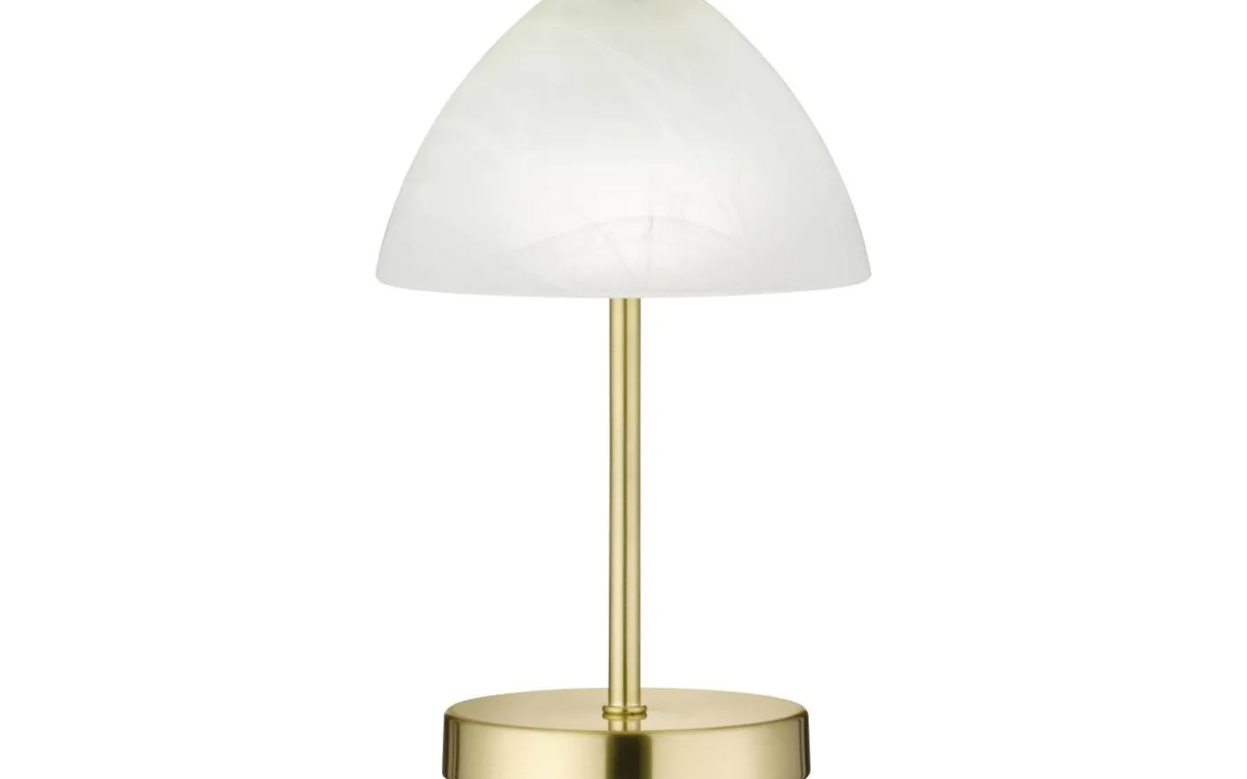 Bordslampan QUEEN imponerar med sin enkla elegans och tidlösa utseende. Den integrerade 4-vägs touchdimmern gör att ljusstyrkan kan justeras stegvis och styrs med knappen på basen. Tack vare sin enkla design kan lampan enkelt integreras i olika inredningsstilar och passar som kompletterande belysning bredvid soffan, som lampa på nattduksbordet bredvid sängen eller på byrån. Bordslampan har en höjd på 24 cm och en diameter på 15 cm. Armaturen i matt mässing kombineras med ett glas i alabasterfärgat vitt, vilket avger ett jämnt ljus. Dessutom har armaturerna modern LED-teknik, vilket står för hög ljuskvalitet. LED-ljuskällor kännetecknas av lång livslängd och låg värmeutveckling. Ljuskälla: inklusive 1x SMD LED, 3W · 1x 280lm, 3000K. Extra information: 4-nivå pekfunktion