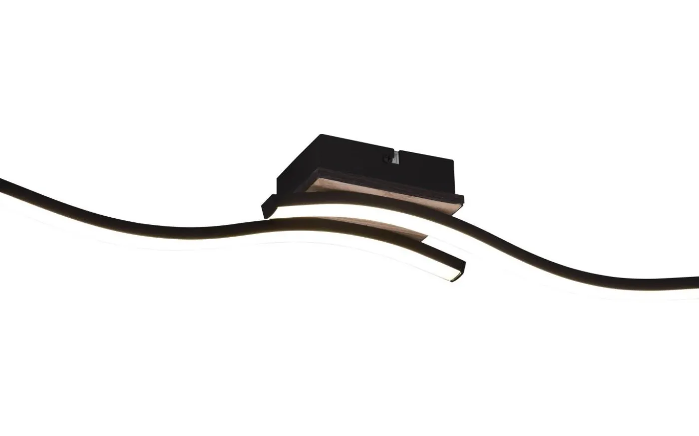 Taklampan ROUTE övertygar med sin moderna och elegant böjda design. Rätt placerad blir armaturen ett riktigt blickfång och förhöjer varje vardagsrum elegant. Taklampan ROUTE med två lampor avger ett mjukt, varmvitt ljus och är idealisk för att lysa upp vardagsrum eller sovrum. Färgkombinationen av matt svart och trälook uppfyller moderna inredningskoncept och kan enkelt integreras. Dessutom använder armaturerna modern LED-teknik, vilket står för hög ljuskvalitet. LED-ljuskällor kännetecknas av lång livslängd och låg värmeutveckling. Ljuskälla: inklusive 2x SMD LED, 5W · 2x 500lm, 3000K. Extra information: Takmontering, IP20, Ej dimbar