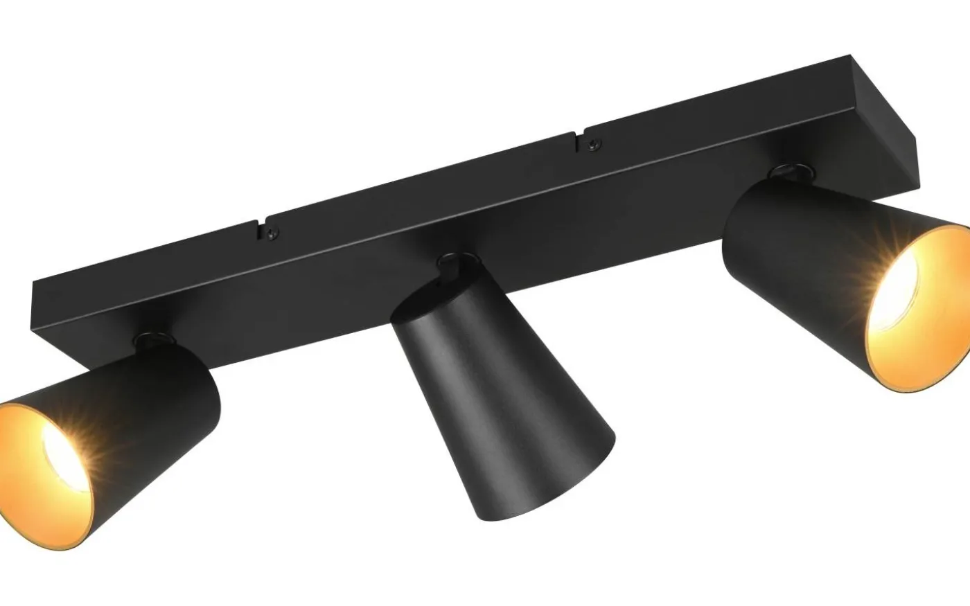 Lamporna i SHARP-serien kännetecknas av sin moderna design och mångsidighet. Tack vare de vridbara spotlighterna är tak- och vägglampan med tre lampor idealisk som en kompletterande ljuskälla i köket eller i små rum och ger ditt hem en mysig atmosfär. Armaturens eleganta mattsvarta färg ger rummet en sofistikerad touch. De utbytbara skydden i svart och guld erbjuder också ett flexibelt samspel med ljuset. För modern och pålitlig belysning rekommenderas användning av en LED-lampa. Den erbjuder hög ljuskvalitet, är mångsidig och övertygar med jämn belysning. Dess långa livslängd och låga värmeutveckling gör den till det perfekta valet för en mängd olika tillämpningar. Ljuskälla: exklusiv 3x GU10 · max. 10W. Extra information: IP20, Lampa(or) ingår ej, Vägg- och takmontering