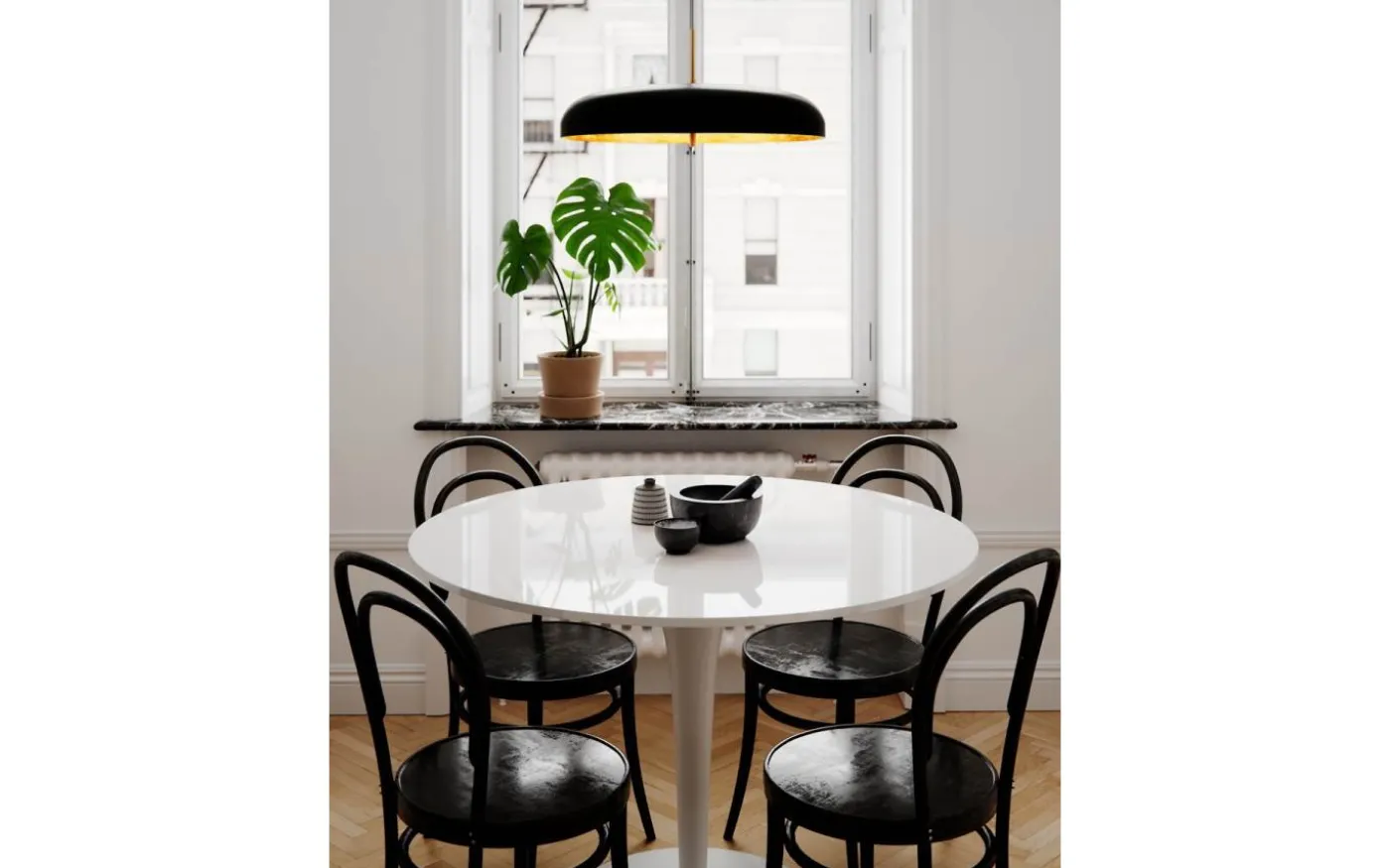 Med sin diameter på 50 cm har Shelby taklampa en självklar plats över matsalsbordet, över en köksö eller över soffbordet.